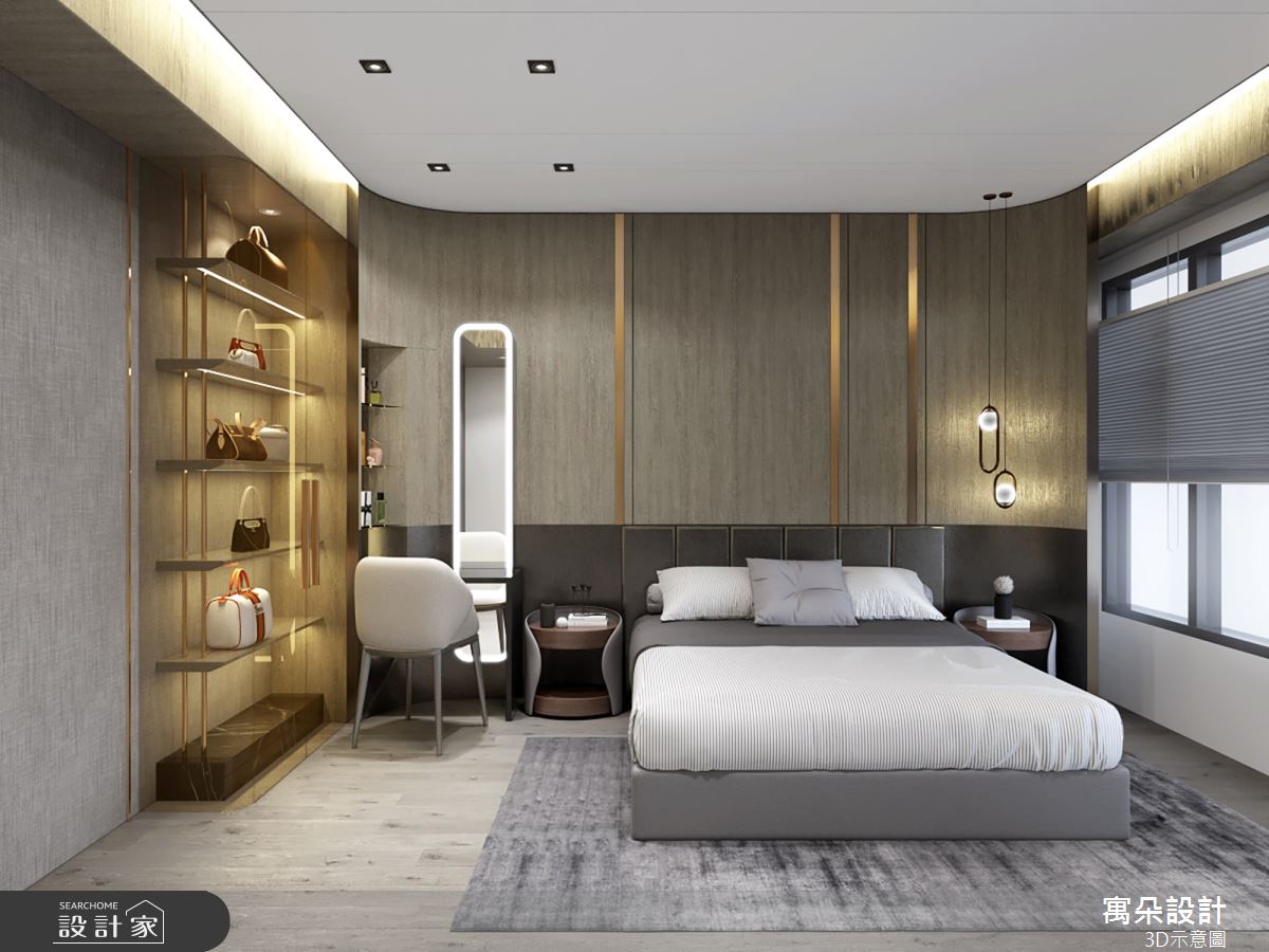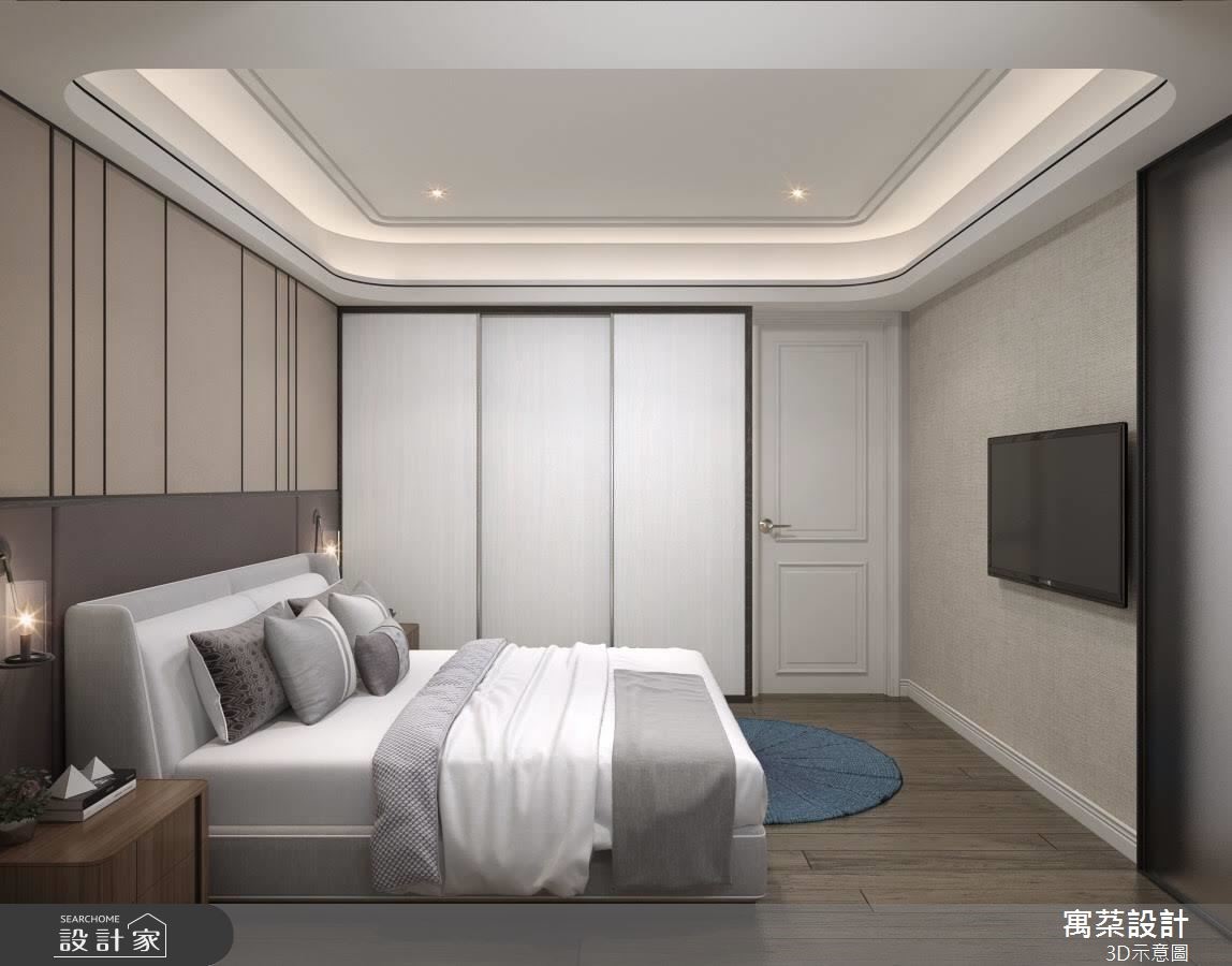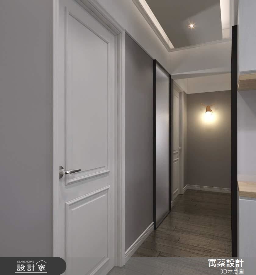 32 坪中古屋,經由設計師改造,除了增添更多的收納空間以外,也依循屋主需求,將原先 3 間房的其中 1 間改為更衣間使用,再搭配淡雅美式風貫穿全宅,創造美觀、實用性兼具的生活場域,快跟著小編一起來看看吧! 整體以淺色調營造清爽背景,保持視覺乾淨度,並注入濃淡適宜的壁板細節,在天花板、踢腳板、門片等處加入細節刻劃,逐一表現美式風的經典場景,沙發牆則讓出裝飾空間,透過相片的一一展示,締造生活中的記憶與溫度;並重整格局,規劃加大的更衣間,除了整合梳妝檯主題,也置入精品展示櫃的概念,讓包包成為空間裝飾,提供賞心悅目的畫面,而額外增加的置物櫃體、更可用來放置行李箱,使用上更多元;私領域,採以優雅的壁材、搭佐乾淨的線條架構,並賦予貼近需求的收納機能,締造舒適休寢場景! 小編的最愛 主臥房天花刻意以圓弧造型作修飾,讓線條更顯溫婉流暢,並促成空間放大感與拉高視野的效果!