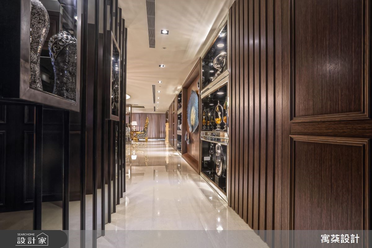 將多年的中古屋整頓翻新後,百坪的空間重新以極致的美學饗宴登場,藉由大理石、玻璃、光帶、義大利特殊漆的材質安排下,調和出蘊含戲劇性與高度藝術的室內氛圍,混搭出摩登非凡的私人豪邸。 義大利特殊漆舖陳的壁面,營造出車庫空間的基底,周圍以光帶線條描繪出立體層次,光影映照在超跑車身,烘托時髦且優雅的身形。客廳天花板的中央拉出深度,整體空間更顯挑高,電視牆以華麗感的大理石鋪陳,立面搭佐LED燈帶,營造出震撼的視覺效果;琴房的門片在設計師與藝術家朋友的提筆下,形塑藝術非凡的迷人景緻;餐廳領域裡,華麗的水晶吊燈、紅色的餐椅擺設,以及精緻金屬鏤空造型的展示背牆,創造出極致的生活體驗;客廳沙發的另一側為琴房,兩廳之間還打造酒窖室,牆壁以鏡面鋪設,單椅與茶几的擺設,彷彿走進風格酒吧裡品嚐酩酊,壁面的酒櫃設計更讓屋主珍藏的佳釀獲得絕佳收納。 小編的最愛 臥室空間的設計更是美輪美奐,多元的風格設計與安排,加上完善的更衣室、衛浴等機能,實現夢想中的家屋風貌。