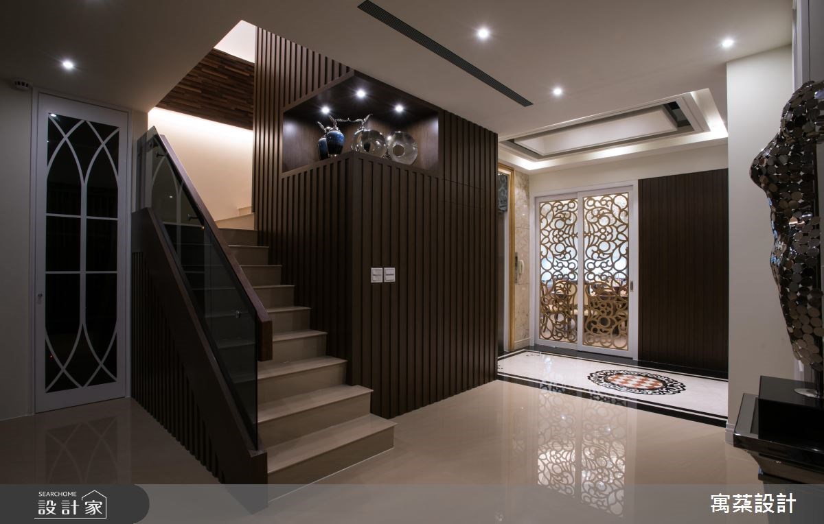 200 坪透天別墅,平時是兩夫妻居所,也作為假日家人團聚的度假宅邸,設計師依循斜屋頂結構,將屋頂設計成有如英國百年圖書館的造型,並讓每個場域發揮特色,各自演繹獨具魅力的空間表情,貴氣卻不流於俗豔,快跟著小編一起來看看吧! 步入玄關,設計師採以木質輝映金色,圍塑高雅氣派的入門景致,並於一側規劃通透屏風牆,達到區隔及展示意味,再透過金色框架烘托藝品主體,凸顯不凡的端景特色;公領域呈現雅致時尚的格調,藉由展示櫃陳列品味收藏,櫃體則利用深色鏡面反射,營造低調華麗的效果,而一座半高電視牆,給予了客廳、餐廳相互串聯的動線,即便是再多賓客來訪也足夠款待,每個場域之間,皆運用天花造型的巧妙變化,詮釋自成一格的獨立範圍,餐廳則以拉門作為隔間,適時阻絕廚房熱炒時的油煙散逸,門片上繪出美妙而風雅的花樣,呈現令人百看不厭的東方韻致;主臥動線四通八達,不僅連通房間及起居室的路徑,更將睡眠區、更衣間、衛浴一路鋪排,完好分配每個空間的使用屬性,盡享優雅尊榮! 小編的最愛 設計師回應女主人期待,以足以媲美六星級飯店的規格打造主臥衛浴,乾濕分離、泡澡浴缸、大洗手檯等一應俱全,將美學思維與紓壓體驗結合得恰到好處!