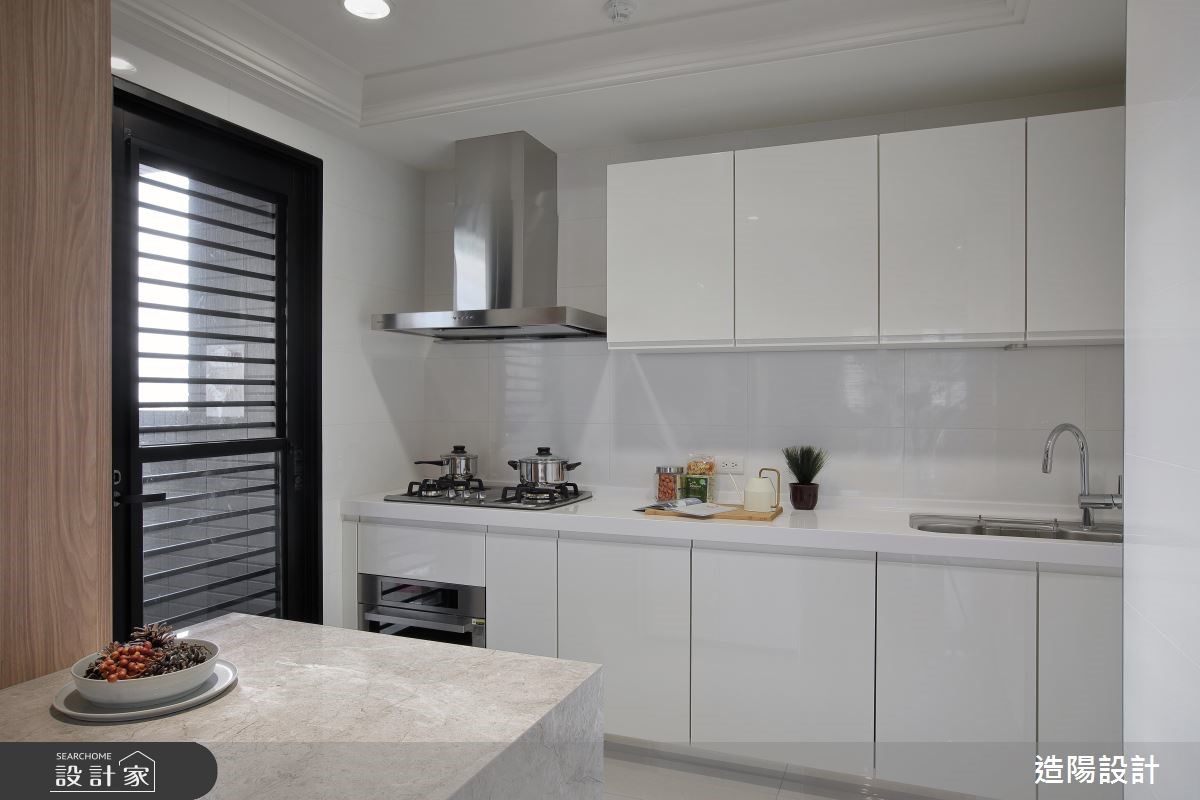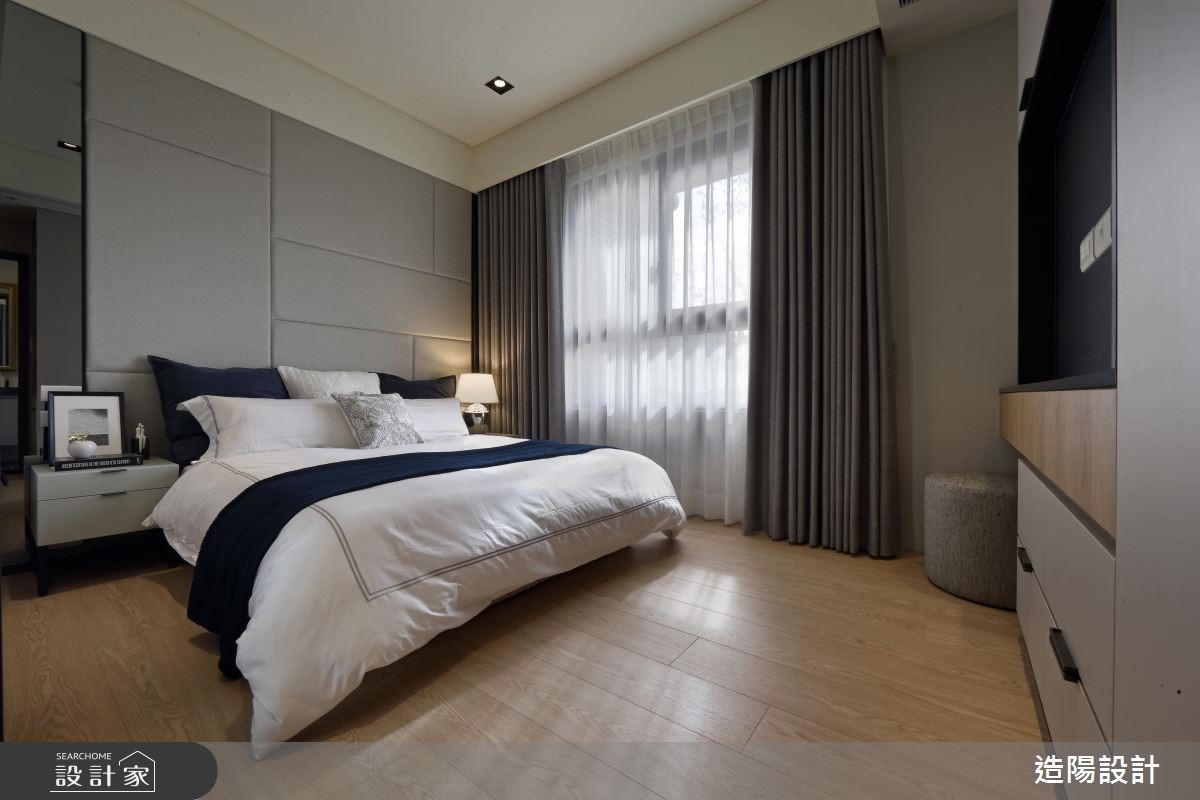 55.8 坪居家,設計師透過簡潔的新古典風修飾,以細緻線板柔化空間表情,並巧置儲藏室、更衣室等取代零散櫃體,透過美形收納與風格美學,打造久居不厭的優質住宅,快跟著小編一起來看看吧! 空間整體以淺色鋪底,營造明亮乾淨的調性,搭配茶鏡門片的妝點,使場域裡外相互輝映,打開了雍雅透亮的生活風景,而簡單卻富有層次的線板,則蔓延於天花與立面,適度添注華麗時尚感,柔化空間剛硬感;餐廳立面刻意留出小格狀的展示櫃空間,藉此陳列裝飾品,把牆面刻畫得更為立體,並規劃專屬儲藏室取代櫃體,讓生活雜物、大件物品可集中收放,避免零碎櫃體的陳列;主臥,配置玻璃屏風界定更衣室、睡眠區,並讓窗光恣意流動,營造室內敞亮度,床頭則藉由線板刻劃完美比例,展現對稱端莊之美! 小編的最愛 次臥採以衣櫃串聯層架、書桌和臥榻,再配上燈光烘托,以一體成形的機能規劃,打造溫馨實用的房間視野!