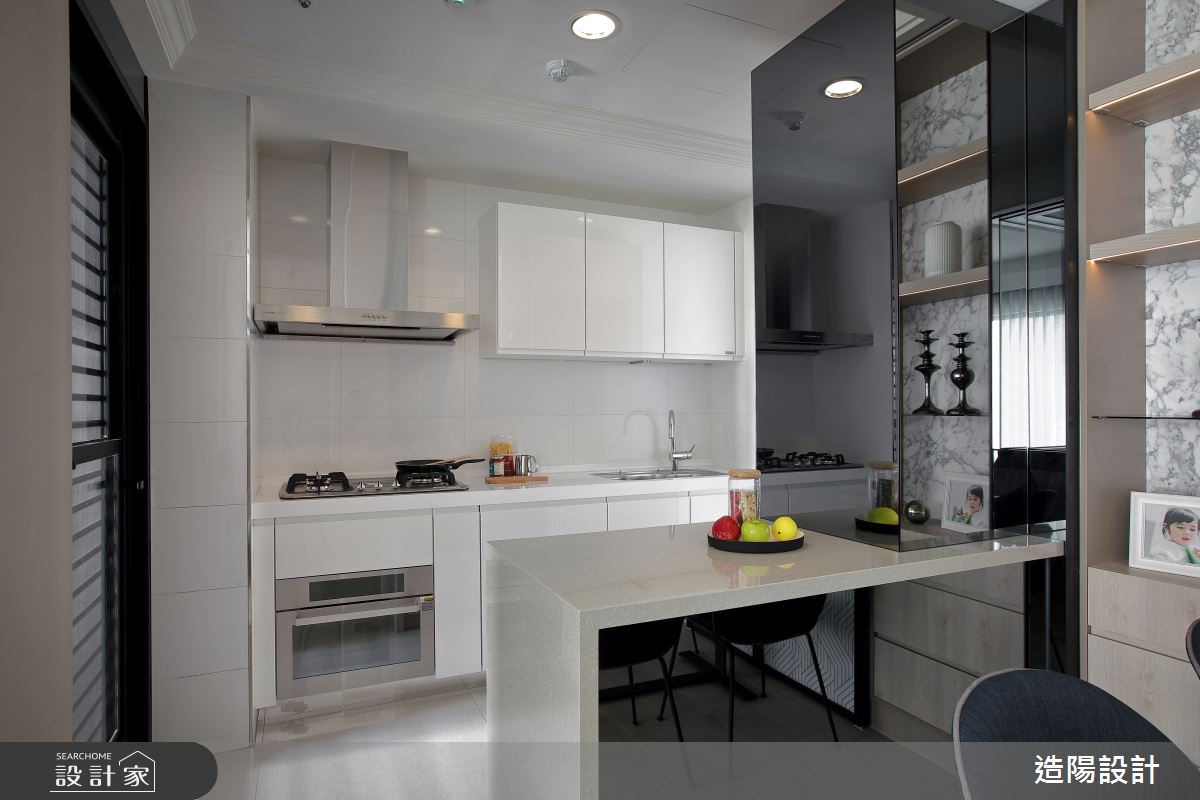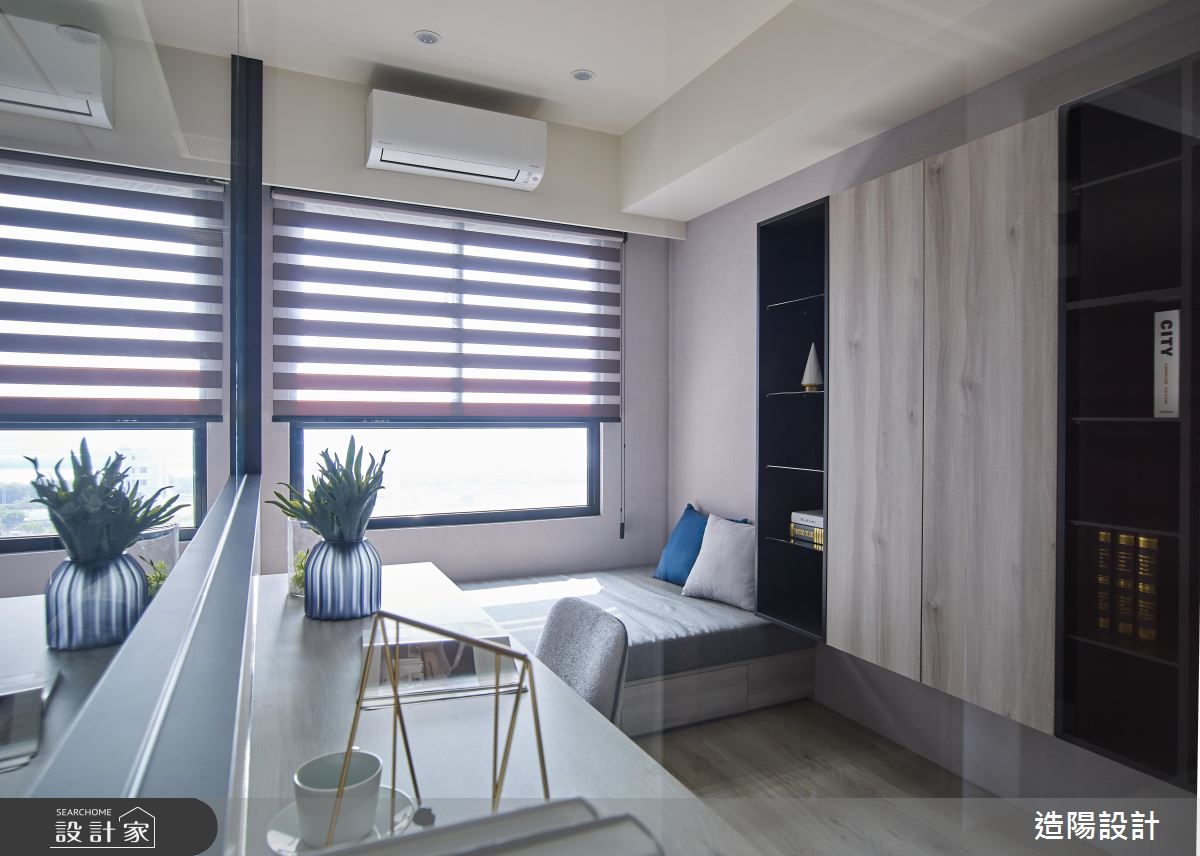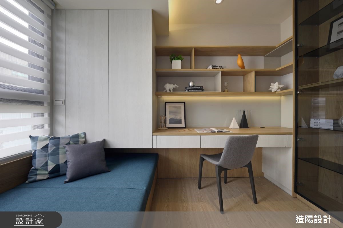 家的輪廓毋需複雜,為家人著想、梳理生活機能,探索重要之物後、重新設定,讓人生更愉悅。 28坪的新成屋以現代風格定位全屋的規劃。為將完整的活動空間留給家人,客廳、餐廳、廚房、書房等公共領域,透過開放式格局和清玻璃,製造通透寬敞的效果,在建材的使用上採用淺色石材與鏡面映,輔以暖色木皮元素作為主要設定,增添場域明亮度;不時融入的造型分割、塊體的創意規劃,提升視覺層次也呼應空間裡的線條表現,營造出清新時尚的幾何美學。 進入私人領域,以灰黑色為主要基調、及織品類的材質,凝鍊沉穩安定的色彩,給予舒適寧靜的睡眠氛圍。而機能的安排上則運用空間的畸零角落,設置小型的更衣室、閱讀區,將家的機能更加延展,同時顧及每位成員的生活需求。 小編的最愛 善用次臥房的每個角隅,濃縮了一個小巧的閱讀區在床旁側,為了保持舒適的使用經驗及安全性,將書桌的90度角,改為弧型收邊,安全又十分實用。
