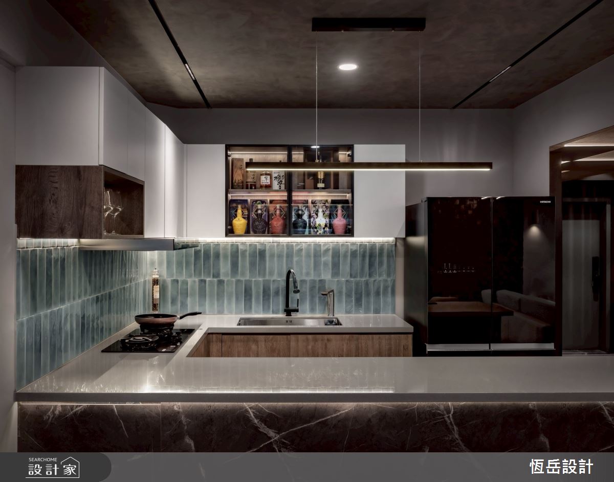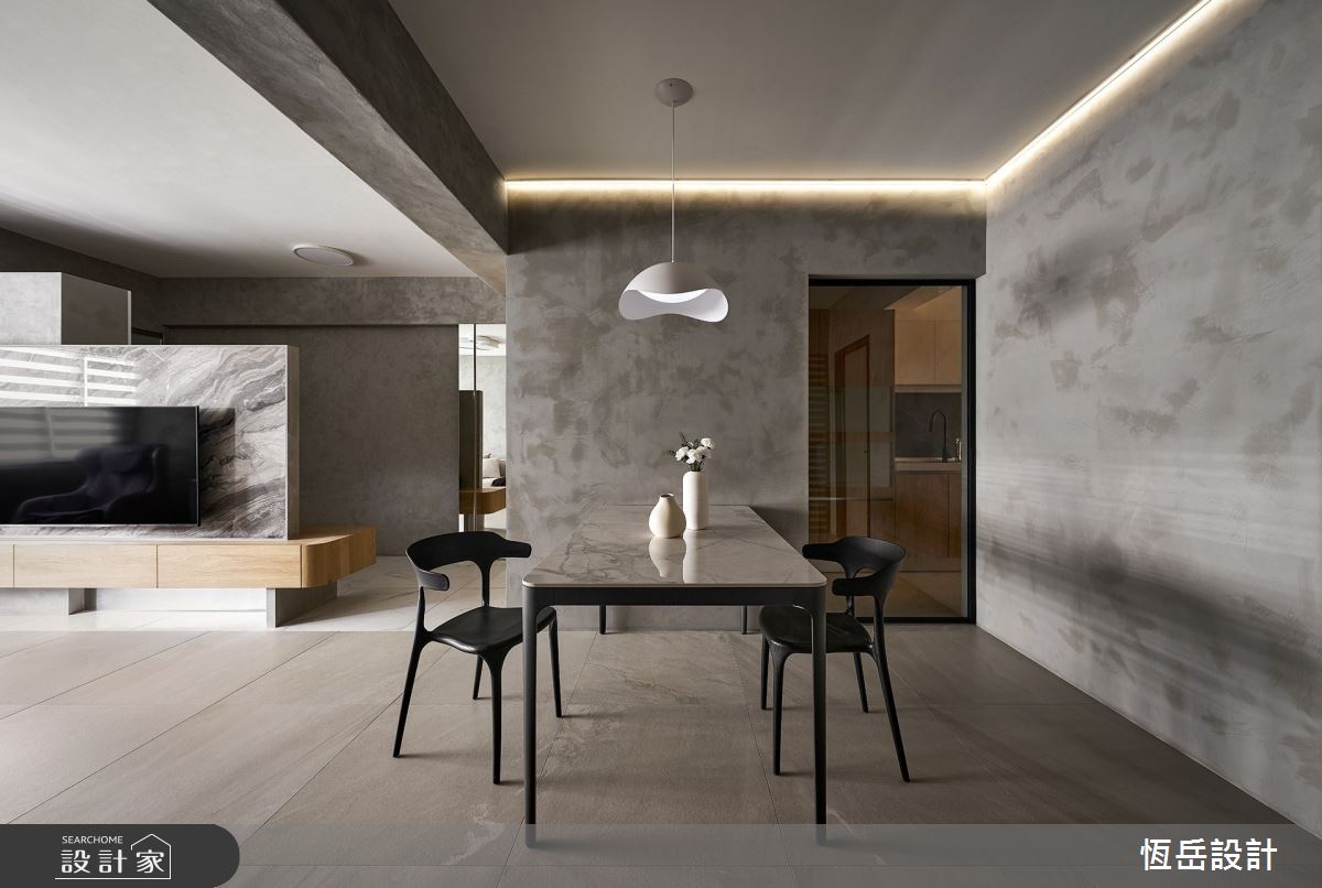 來自恆岳設計的35坪侘寂風住宅案,屋主一家人共有1位大人、1位長輩,是一間單層老屋(41~50年)的兩房格局,設計師藉由建材以乳膠漆、花磚、超耐磨木地板、石英磚/拋光石英磚、烤漆、鋼刷木皮、大理石、水泥/水泥粉光、人造石、賽麗石、石材的搭配應用,實現一家人的理想生活。