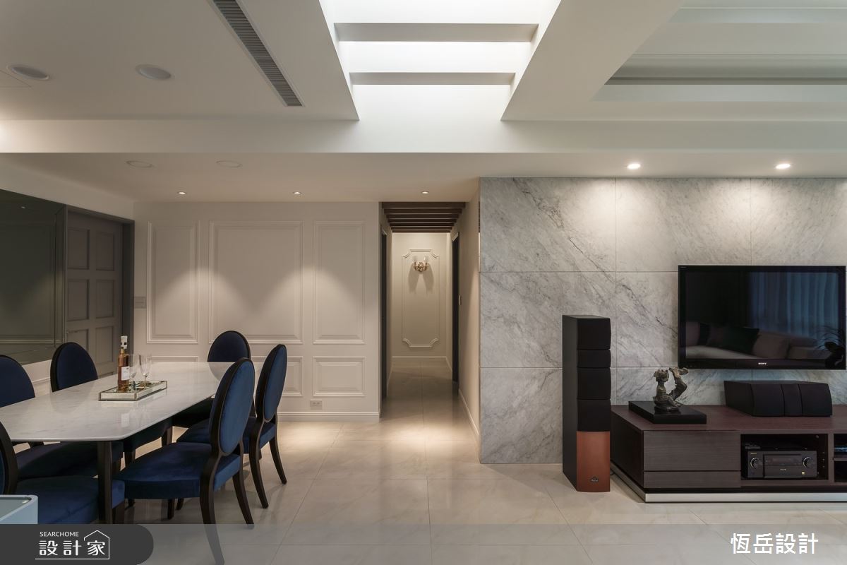 本案為恆岳室內裝修工程的36坪新古典老屋(16~30年)設計作品,格局為單層三房的居住空間。居住成員包含2位大人、2位小孩。全室建材的搭配,應用歐式線板、美耐板、噴漆、鏡面,展現溫馨的居家氛圍。