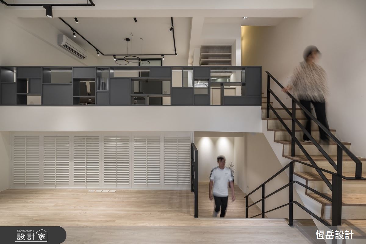 恆岳設計以乳膠漆、鐵道磚、六角磚/蜂巢磚、花磚、超耐磨木地板、PVC地板、石英磚/拋光石英磚、鐵件、灰鏡、茶玻、烤漆、系統板材、磁磚、水泥/水泥粉光、人造石、軌道燈、石材、噴漆、噴砂玻璃的搭配應用,呈現混搭風居家氛圍,將此間110坪、五房、透天別墅、老屋(16~30年)打造成舒適愜意的家庭空間,完成2位大人全家人的夢想之居。