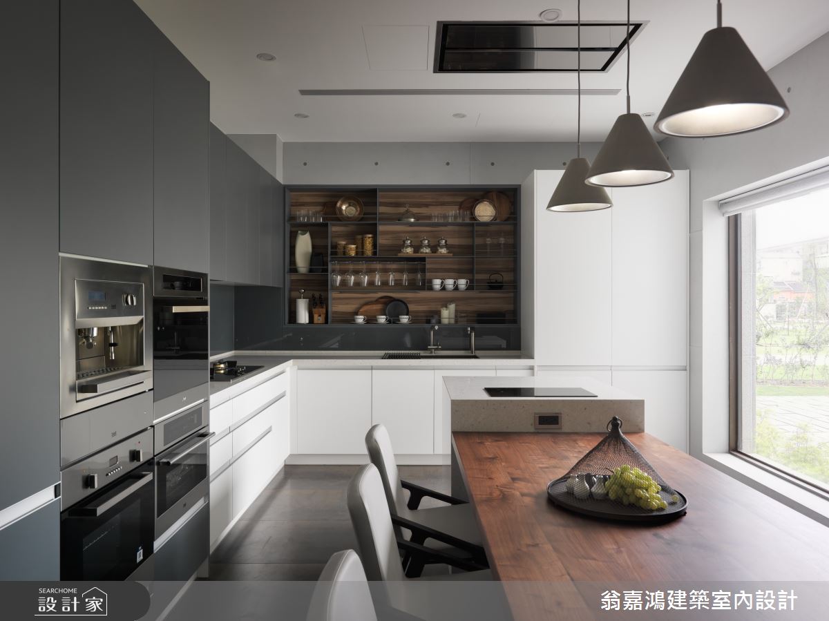 來自翁嘉鴻建築室內設計的116坪現代奢華風住宅案,屋主一家人共有2位大人、2位小孩、2位長輩,是一間透天別墅新成屋(5年以下)的四房格局,設計師藉由建材以磁性漆/磁性黑板漆、超耐磨木地板、鐵件、鍍鈦金屬、鋼刷木皮、大理石、磁磚的搭配應用,實現一家人的理想生活。