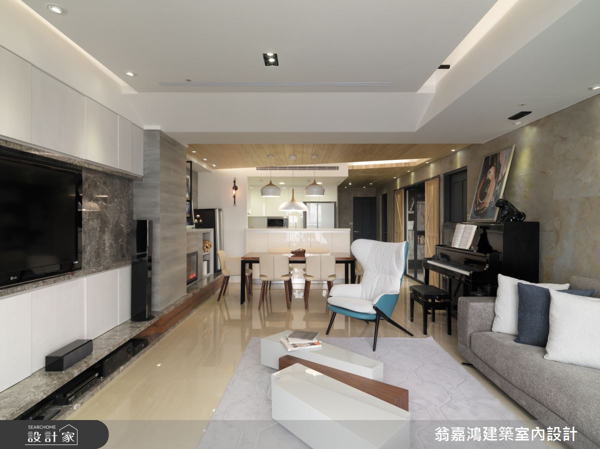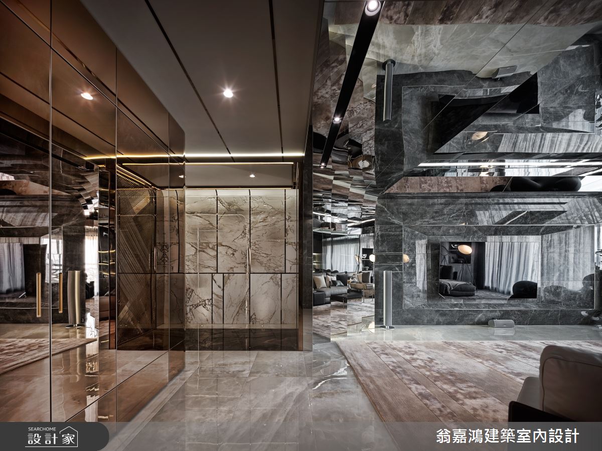 來自翁嘉鴻建築室內設計的116坪現代奢華風住宅案,屋主一家人共有2位大人、2位小孩、2位長輩,是一間透天別墅新成屋(5年以下)的四房格局,設計師藉由建材以磁性漆/磁性黑板漆、超耐磨木地板、鐵件、鍍鈦金屬、鋼刷木皮、大理石、磁磚的搭配應用,實現一家人的理想生活。