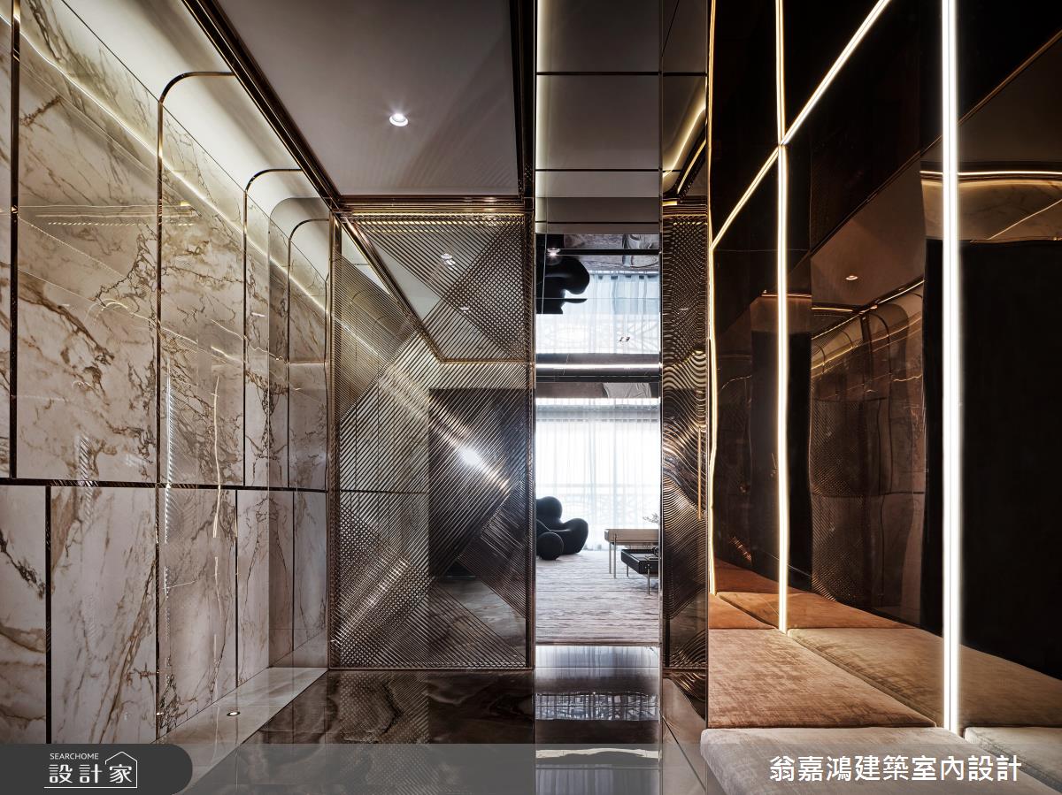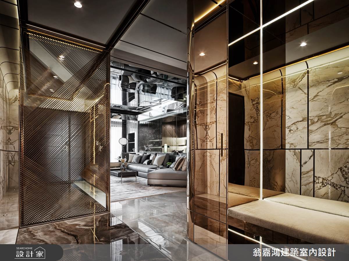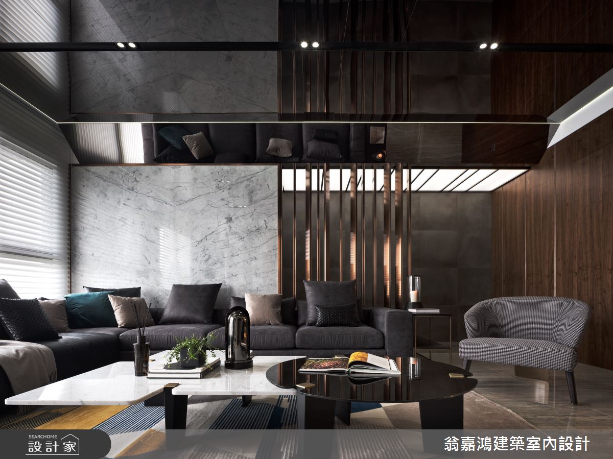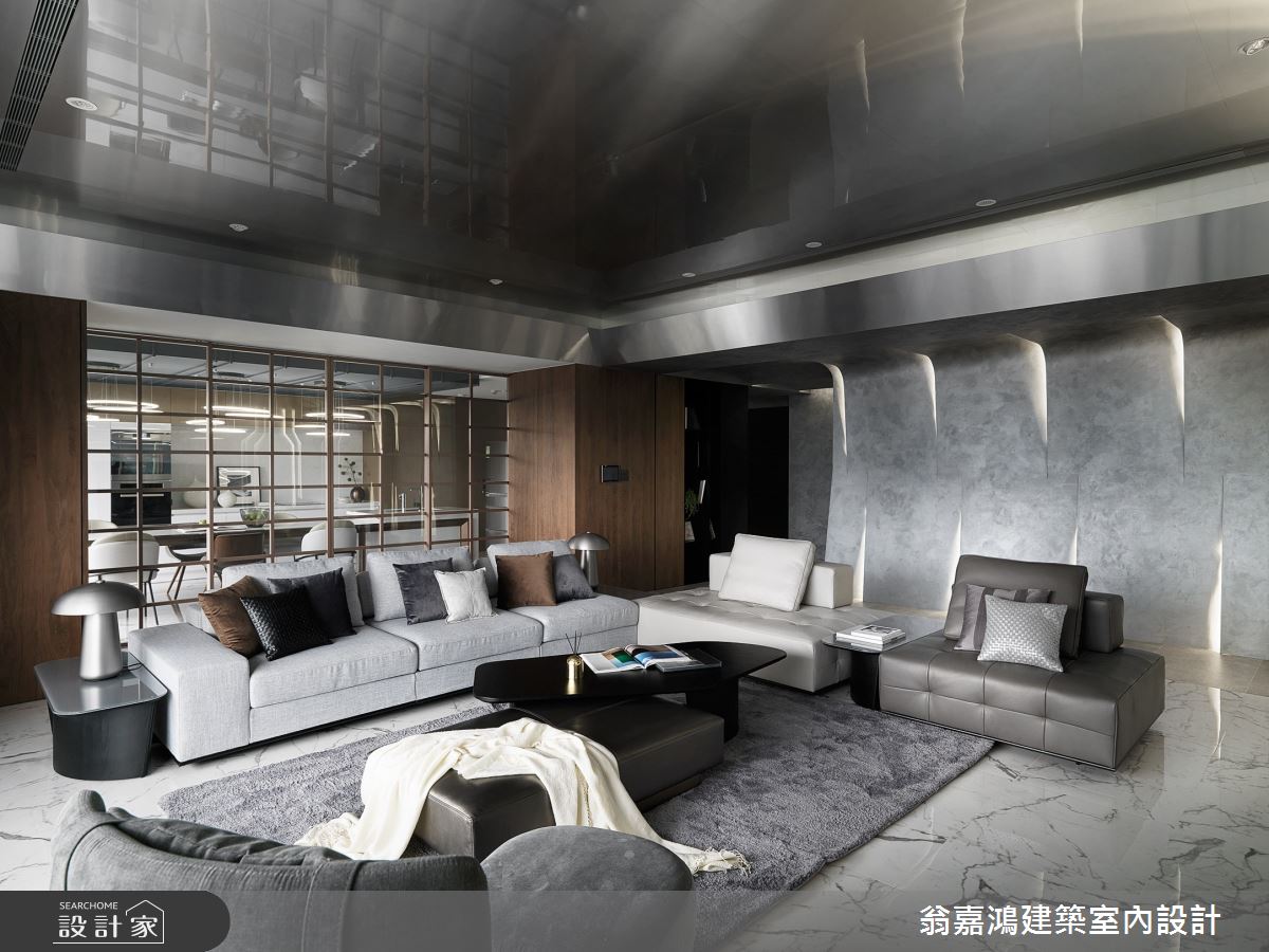 來自翁嘉鴻建築室內設計的90坪現代風住宅案,屋主一家人共有3位大人、1位小孩,是一間單層毛胚屋的四房格局,設計師藉由建材以鐵件、鍍鈦金屬、磁磚的搭配應用,實現一家人的理想生活。