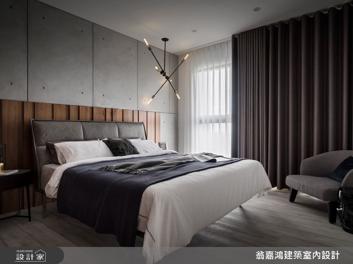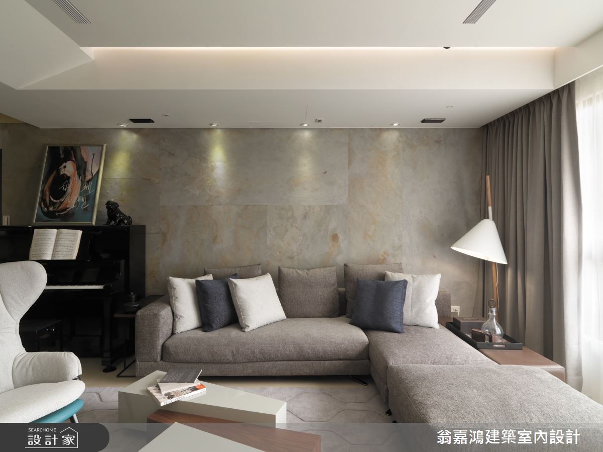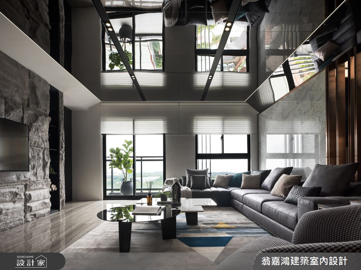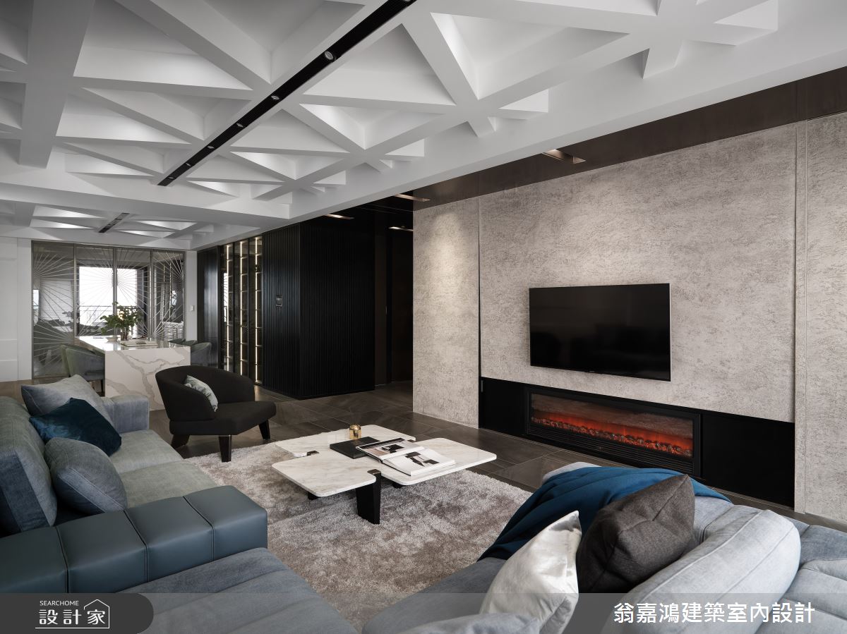 來自翁嘉鴻建築室內設計的90坪現代風住宅案,屋主一家人共有3位大人、1位小孩,是一間單層毛胚屋的四房格局,設計師藉由建材以鐵件、鍍鈦金屬、磁磚的搭配應用,實現一家人的理想生活。