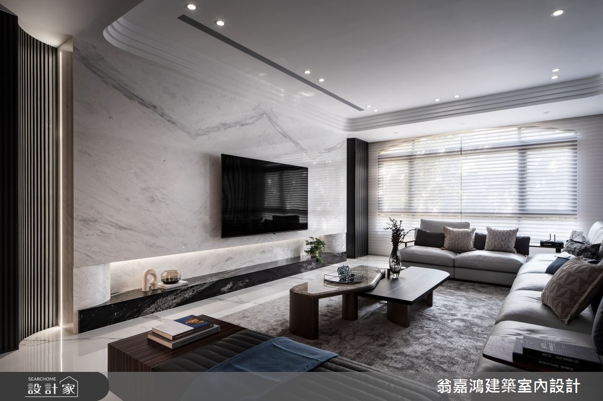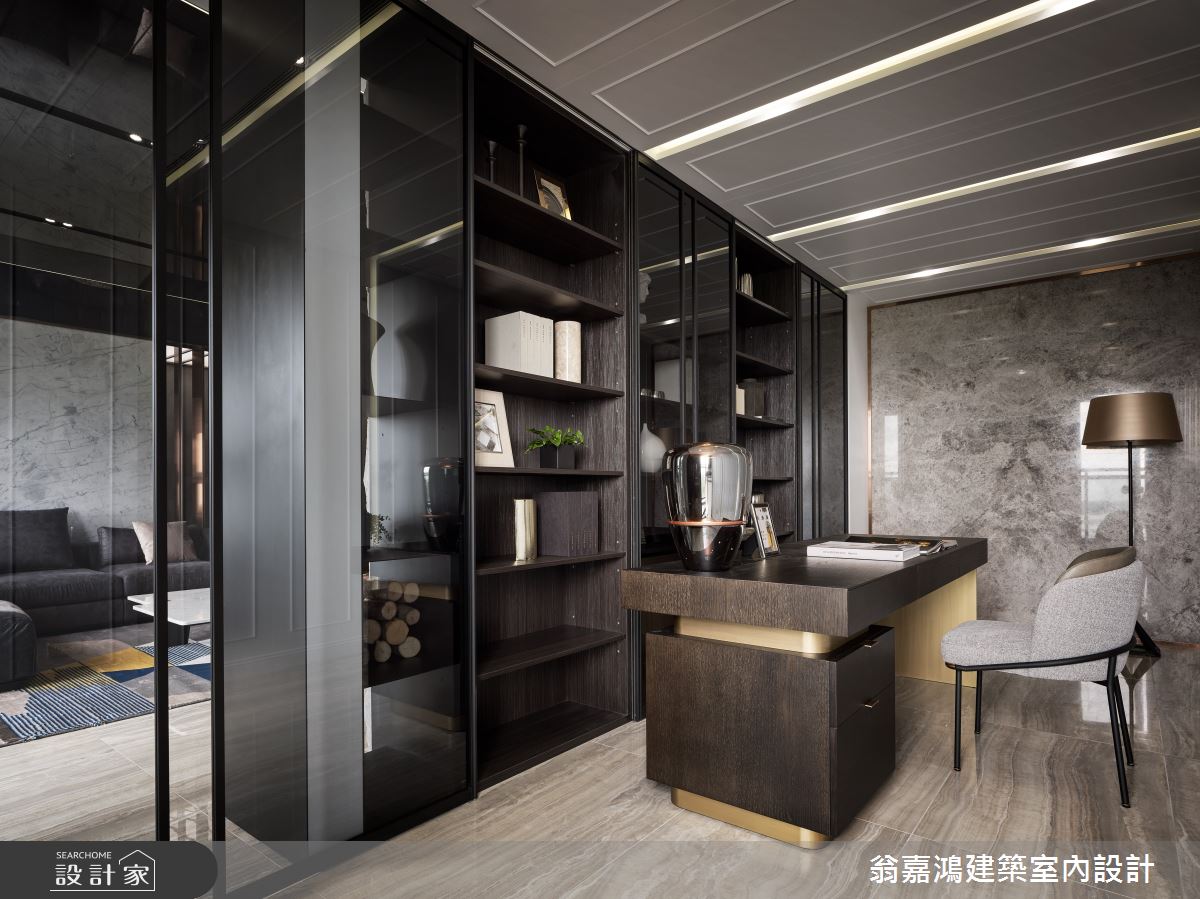 來自翁嘉鴻建築室內設計的180坪現代奢華風住宅案,屋主一家人共有2位大人、2位長輩,是一間透天別墅新成屋(5年以下)的四房格局,設計師藉由建材以超耐磨木地板、鐵件、鍍鈦金屬、鋼刷木皮、大理石、大板磚的搭配應用,實現一家人的理想生活。