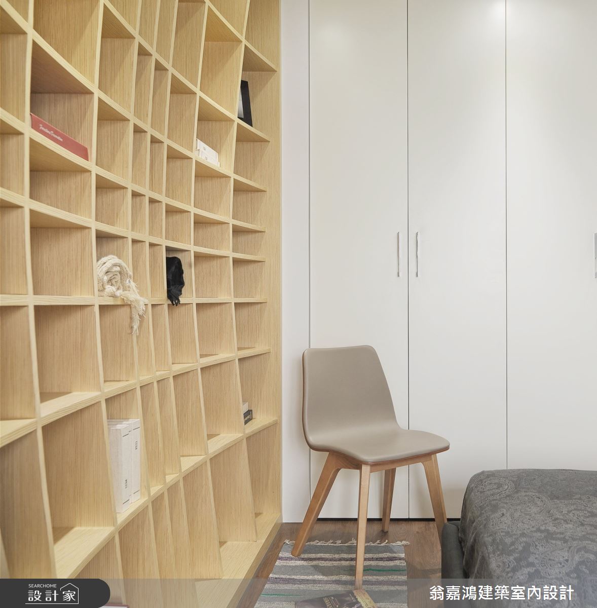 在台北市大同區,有一間 3 房 2 廳屋宅,由老屋改建而成,屋主是高學歷單身女,她將這間房子作為禮物,送給她兩個永不變心的忠實情人——「書籍」和「寵物」。在空間中,不只具有大量的書櫃空間,更添加體貼愛貓的設計,並注入超清新的色彩,打造出單身貴族的知性生活! 走進 40 坪居家中,即可見到玄關牆配置的造型鏡子,透過樹枝營造的自然意象,搭配鞋櫃的溫潤木質,開啟一股清新感受;在公領域中,運用綠色壁漆打造主牆,讓跳躍色彩從書房、客廳、玄關延續至餐廚空間,使綠意延伸在整個開放式空間中,營造舒緩的療癒風格;而在客廳、書房之間,則設計一面可彈性變化的隔屏,不只可切分領域,更讓光線可自由地穿透延伸,讓居室每一處都保有明亮度,書房則將書牆連接天花板,框架出品味兼具機能的櫃體造型,滿足女屋主的書籍收納需求;就連餐廚空間的牆面,也做出了內嵌式造型書櫃,以不規則線條增添空間層次,體現了閱讀無所不在的生活真義;主臥呈現浪漫的紫色調,空間不只懸吊一張鞦韆吊椅,更將床邊書櫃與貓跳台做出結合,替女主人和愛貓量身打造每天的歡樂時光! 小編的最愛 次臥房以頂天立地的櫃體做為視覺亮點,採用弧形線條設計,柔化了空間的剛硬感,大容量的格櫃則可放置各式物品,不只書籍,就連 CD 、相片等物品都有了容身之處!