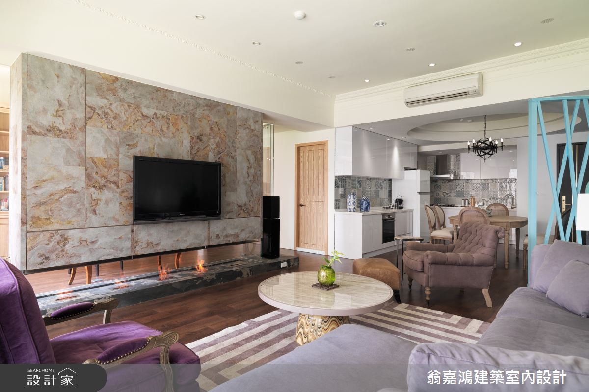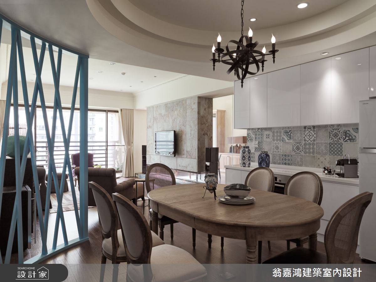 跳脫傳統的裝修思維,在生活中加些不一樣的創意,像是蔓延牆面的絢麗花磚,或是水藍色弧形格柵,搭配富有古典風情的家具軟件,與現代的摩登感接軌,讓自己躋身為不失時尚風範的摩登貴族吧! 走進 60 坪的新成屋,如漣漪的圓形天花穹頂和水藍弧形格柵為用餐區定義,花磚在牆面上恣意蔓延,襯托餐廚區的美好風景。以開放式設計連結的客廳區域,沙發背牆鋪飾典雅線版,細膩點綴古典的溫文氣質,電視牆側邊與下方特意保留通透區塊,為書房與客廳留下自在呼吸的流動視野。閱讀區以活動式家具布置舒適氛圍,收納不過度做滿,打造既開放而自由輕盈的生活質感。來到睡眠區,床頭處留有讓心靈休憩的小榻,牆面利用磚形排列的木紋,鋪飾溫潤特質,迎來紓壓療癒的舒眠氣息。 小編的最愛 在現代風的摩登空間中,加點西式或東方古典氣質的軟件元素,瞬間提升了居宅的人文性格,更顯獨樹一格的魅力。