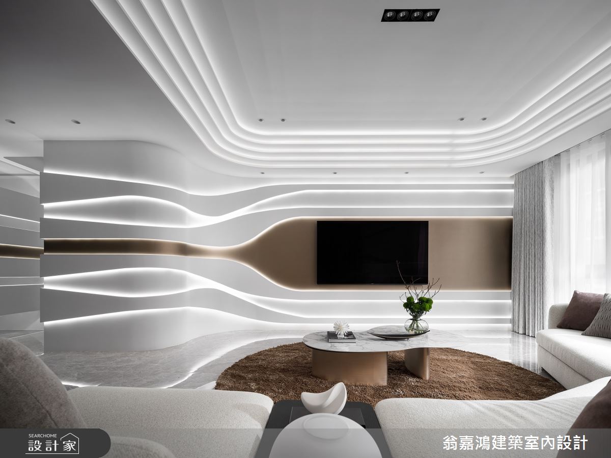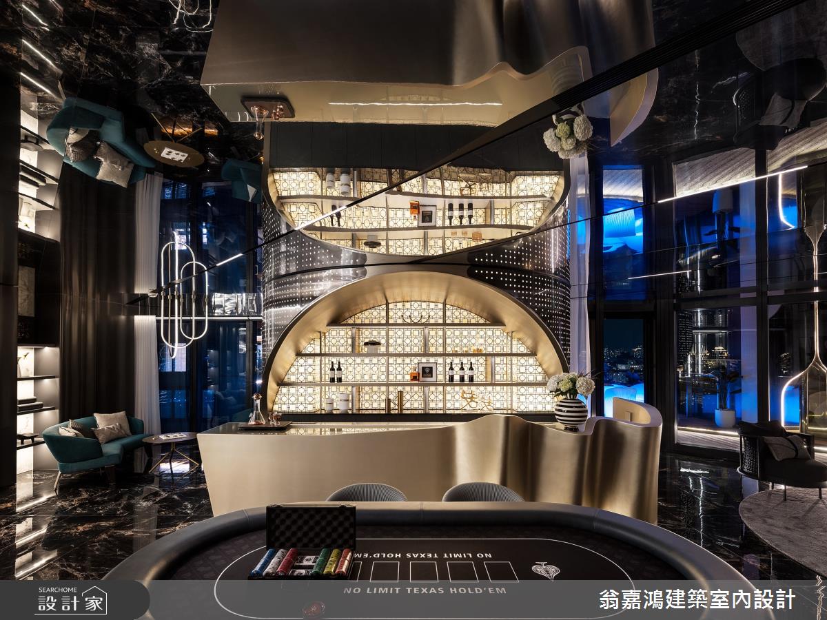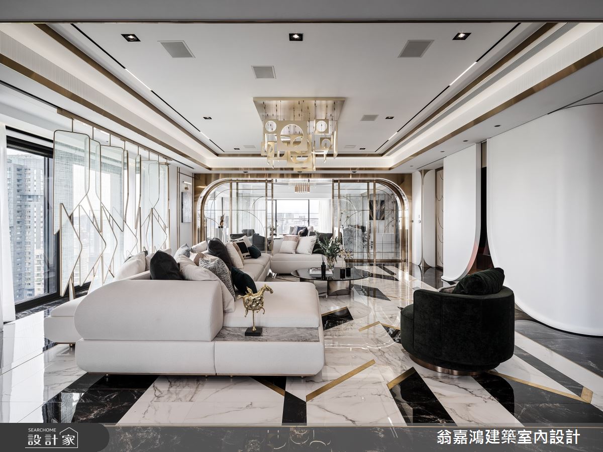 翁嘉鴻建築室內設計|懷生設計以油漆、壁紙、鐵件、灰鏡、鍍鈦金屬、烤漆、壓克力、大理石、磁磚、皮革、繃布、線板、噴漆、塑木地板、金屬漆、塑鋁板的搭配應用,呈現奢華風居家氛圍,將此間158坪、兩房、單層、新成屋(5年以下)打造成舒適愜意的家庭空間,完成全家人的夢想之居。