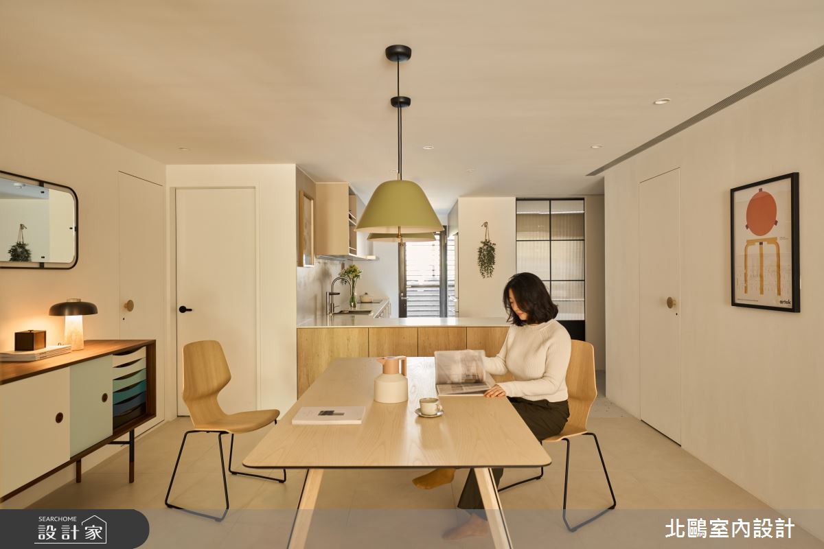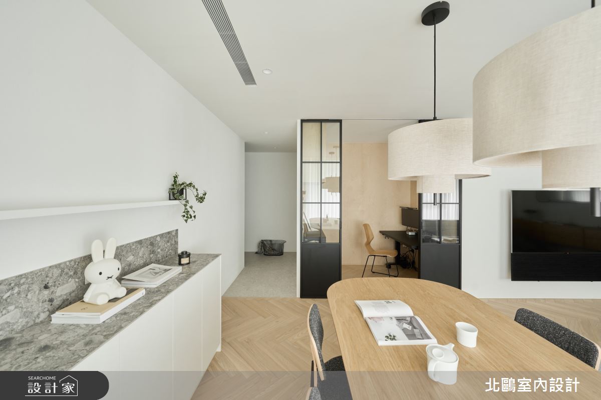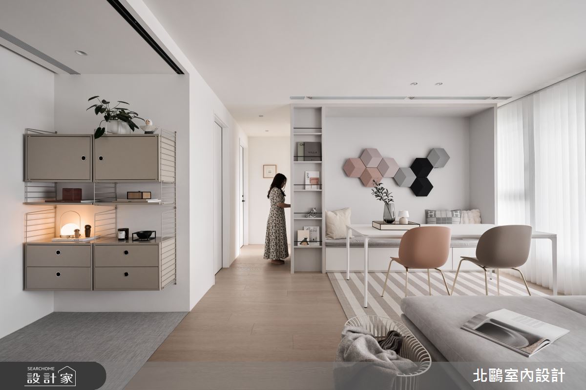 本案為北鷗室內設計的20坪北歐風新成屋(5年以下)設計作品,格局為單層三房的居住空間。居住成員包含3位大人。全室建材的搭配,應用乳膠漆、木作貼皮、系統板材、鐵件、海島型木地板、磁磚,展現溫馨的居家氛圍。