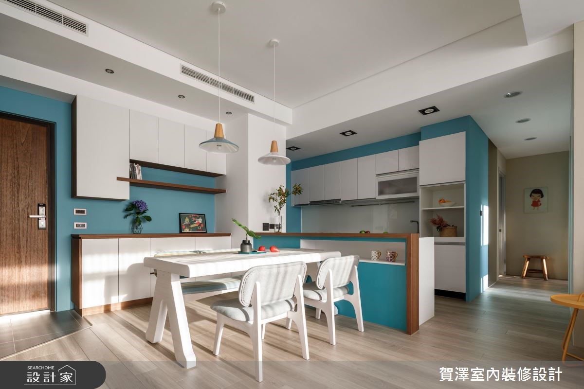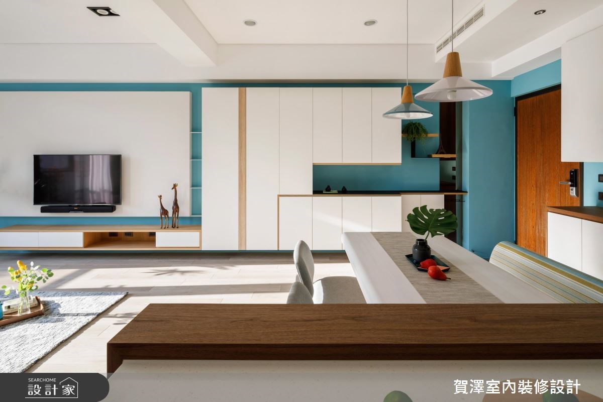 僅有 26 坪的居家空間,經過設計師的客變調整後,展現舒適無限的空間感,並量身打造每間臥室的尺度與機能,在硬體、軟裝的完美搭接之下,創造北歐風的清新場景,快跟著小編一起來看看吧! 空間整體呈現簡約主調,於電視牆加入白色背景,並加以藍綠色跳出亮點,呈現活潑輕盈的主牆表情,再以窗面引導四季風景與美好採光,替室內挹注敞亮氣色;收納規劃上,則延續明亮色彩與幾何線條貫穿,運用於玄關、廚房、電視牆與餐櫃等處,除了避免櫃體沉重之感,也透過量體的錯落、色調的重心轉移、巧妙修飾樑柱於無形;私領域,則將主題色彩、床組樣式、活動家飾等一併考慮,輕巧內置了主人個性,並讓機能形式一體成形、便利使用,使休寢空間更具整體感! 小編的最愛 設計師以鮮明色彩跳出空間特色,使居住空間洋溢著放鬆的節奏,更貼近北歐風的舒適題旨,替一家人帶來視覺、感官的美好享受!