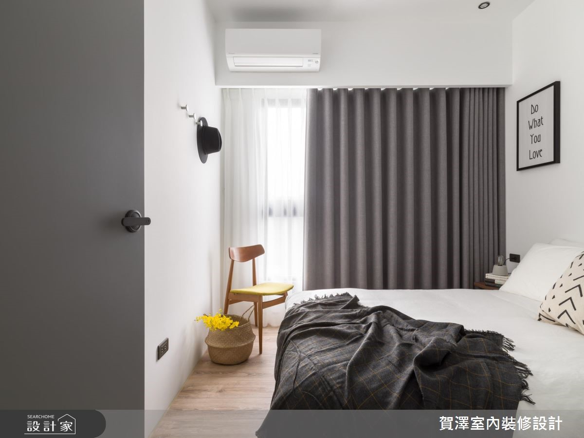 任職於科技業的屋主夫婦,對於新生活的輪廓清晰,從家具品牌選擇、老物件收藏等,顯示相當的生活美學品味,與設計師細節斟酌也簡快明瞭,讓這間 29 坪北歐風居宅順利完成。 餐廚收納層架延伸至迎賓入口處,成為簡約便利的鑰匙收納區,與電視系統收納櫃結合的鞋櫃,不做滿的L型鏤空處,兼容穿衣鏡、穿鞋椅、收藏品展示作用。客廳電視牆暗藏大容量收納機能,純淨白色系、無把手門片的巧思,打造無壓力的視覺感受;客廳後方書房僅以矮牆切分,開放式呈現共享充沛採光,更拉近夫妻間生活距離。從獨立廚房延伸出的收納檯面,擺放屋主自行選購的設計品牌咖啡機、烤箱;懸吊上櫃部分展示層架,放置小倆口的杯碗瓢盆,高質感品味與北歐風裝潢相輔相成。臥房單純的色彩計畫,營造舒眠氛圍;倚窗對座的藤椅佐亞麻色地毯,創造小而美的紓壓角落。 小編的最愛 不遮掩的電箱,刷上白色油漆,黑體英文字母拼湊的專屬 LOGO,變身男屋主攝影作品的專屬展演空間!清新的木與白空間,穿插著 70 年丹麥木櫃、二手復古吊燈、沙發旁針織桌、異國布織品等,展示小倆口的收藏足跡,每個細節也都讓人想再三品味。