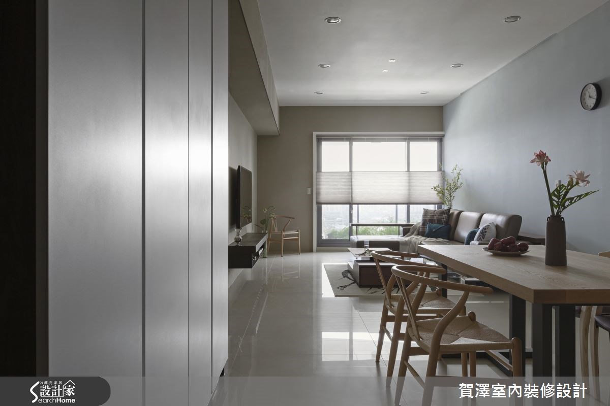 來自賀澤室內裝修設計的45坪簡約風住宅案,屋主一家人共有2位大人、1位小孩,是一間單層中古屋(5~15年)的四房格局,設計師藉由建材以陶瓷烤漆、鐵件、特殊漆、木皮、石紋美耐板的搭配應用,實現一家人的理想生活。