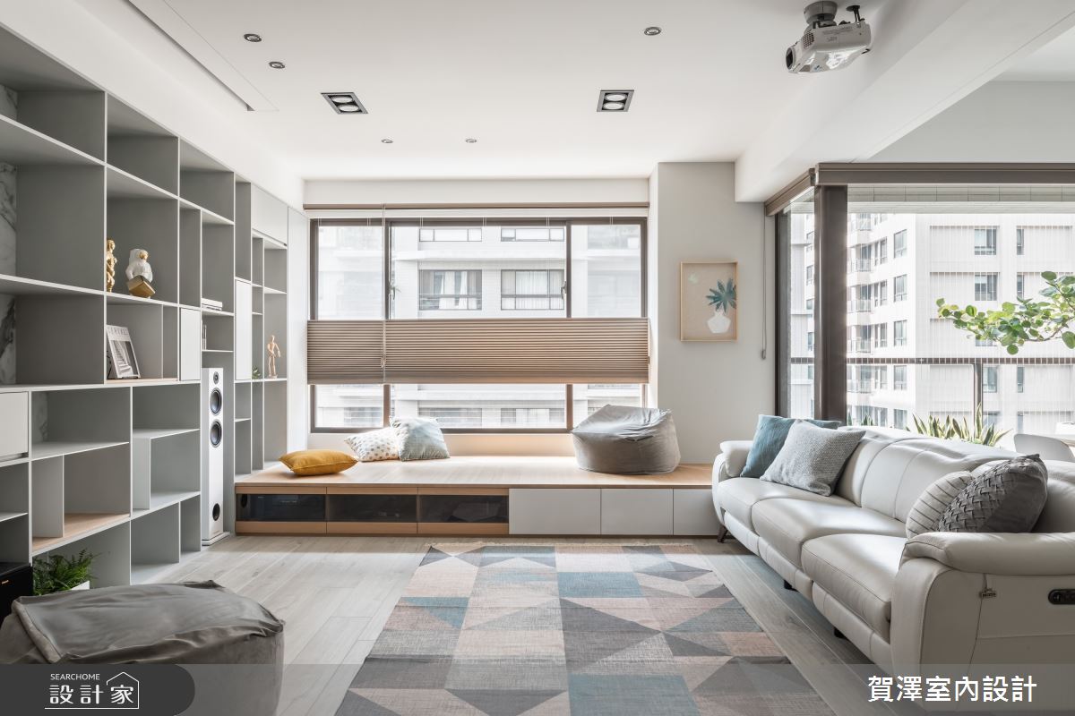 賀澤室內設計以乳膠漆、超耐磨木地板、鐵件、木作貼皮、烤漆、系統板材、石材、特殊漆的搭配應用,呈現簡約風居家氛圍,將此間29坪、三房、單層、新成屋(5年以下)打造成舒適愜意的家庭空間,完成2位大人全家人的夢想之居。
