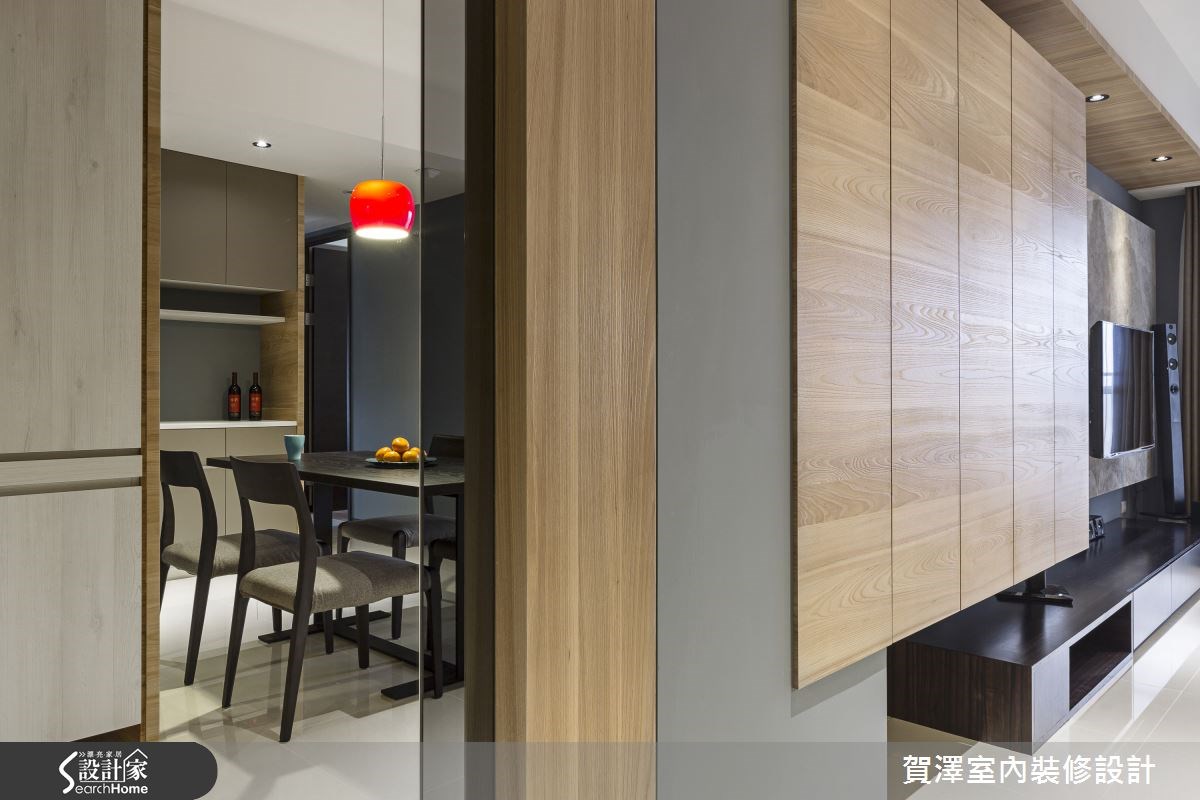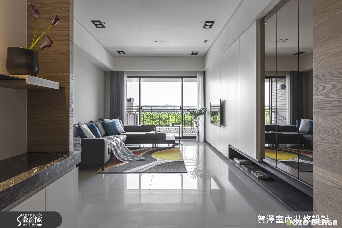 新竹的 30 坪 3 房 2 廳居宅,住著一對從事科技業的年輕夫婦,兩人找來設計師規劃風格,替空間注入現代風語彙,營造穩重的居住氛圍,並佐以合宜的色彩計畫與材質搭配等,完成了超乎屋主想像的驚喜規劃,快一起走進這個家看看吧! 在玄關處,設計師於牆面妝點鏡面材質,並規劃一座展示端景櫃,開啟入口處的寬闊視覺感;延伸入內,以木質懸吊櫃體結合電視牆,形成延伸入內的動線導引,在木質調與大理石材的色塊拼接下,描繪出質樸天然的立面表情,並刻意選配深色軟件,注入沉穩靜謐的氛圍,而客餐廳則採開放式規劃,以一面落地窗引進豐沛且流通的採光,搭配餐廳領域的整面鏡面牆,型塑出延伸、明亮的居宅視野;臥房空間則以木地板舖陳,增添溫馨的暖意,讓床頭牆以灰色定調,在花卉壁紙的鋪述之下,形成優雅放鬆的休寢氣氛! 小編的最愛 在主臥的床頭牆後方保留一處狹長地域,並以牆面一側為入口,延攬採光至睡眠區,同時於後方過道牆面作出鏡面設計,形成實用的更衣空間,將睡眠、更衣主題作出流暢的動線規劃!