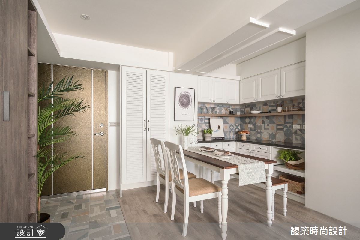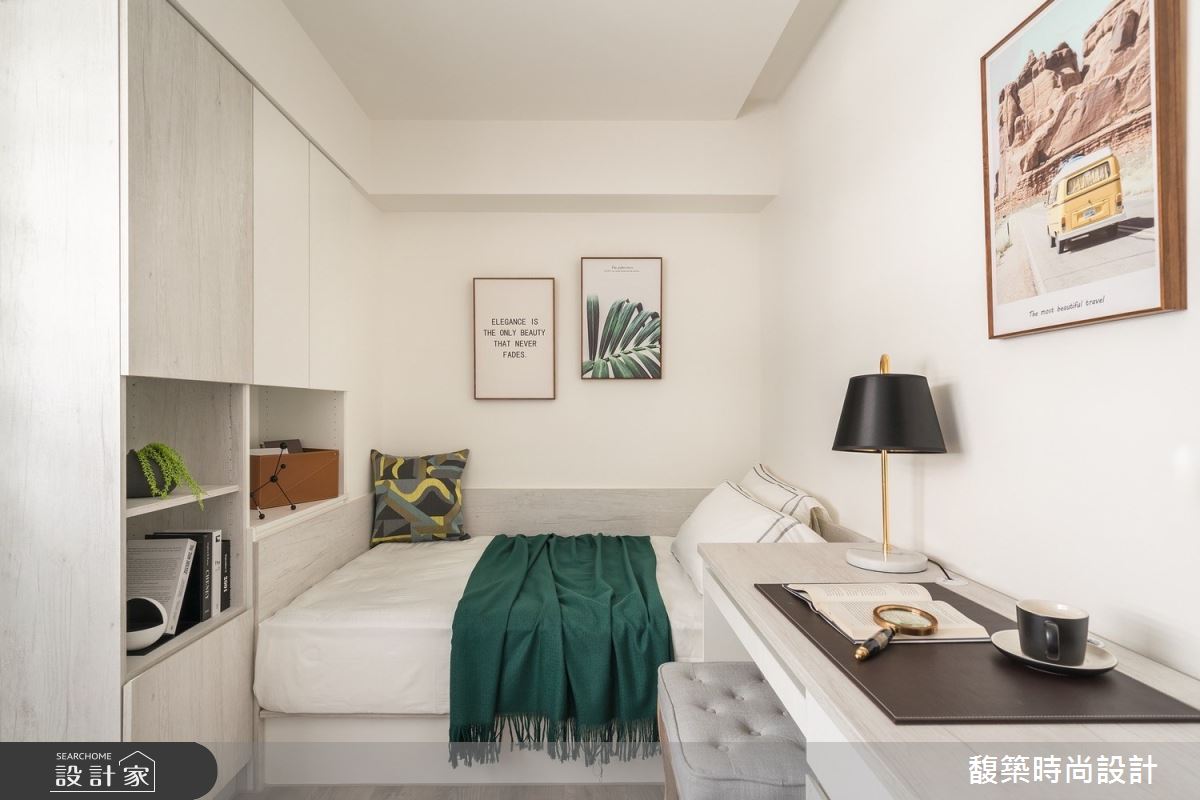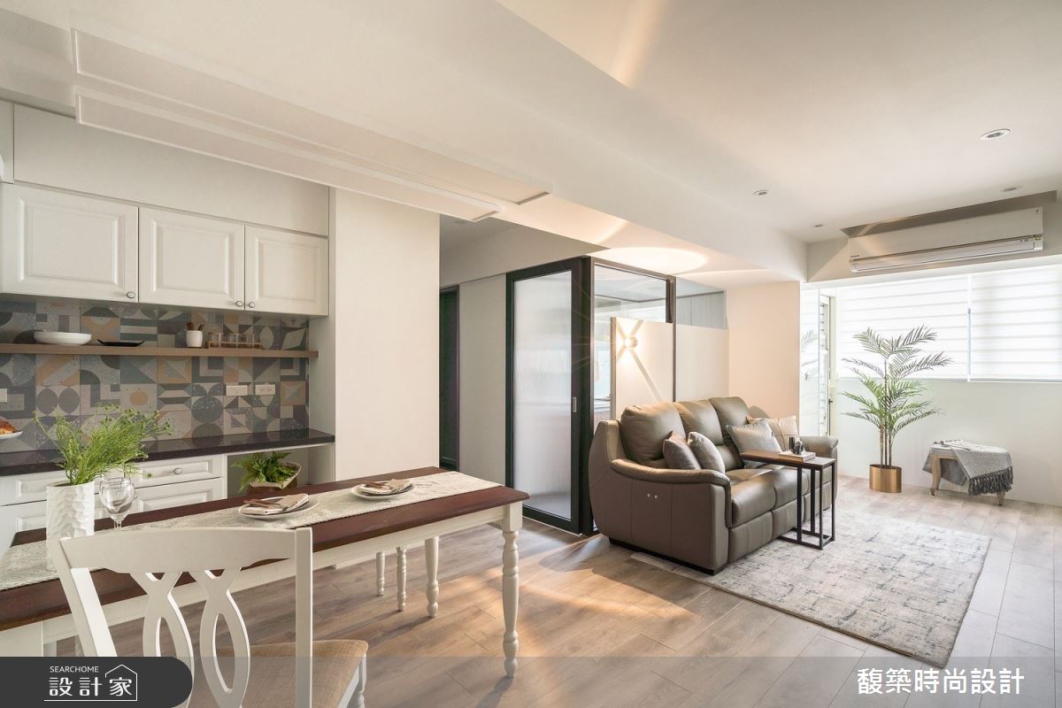由馥築時尚設計精心規劃的17坪兩房住宅空間,家庭成員一共有1位大人、1位小孩。因應屋主需求,設計師運用現代風作為主軸,搭配超耐磨木地板、烤漆玻璃、拼花磁磚、系統家具、天然木皮,打造全家人的夢想家居。
