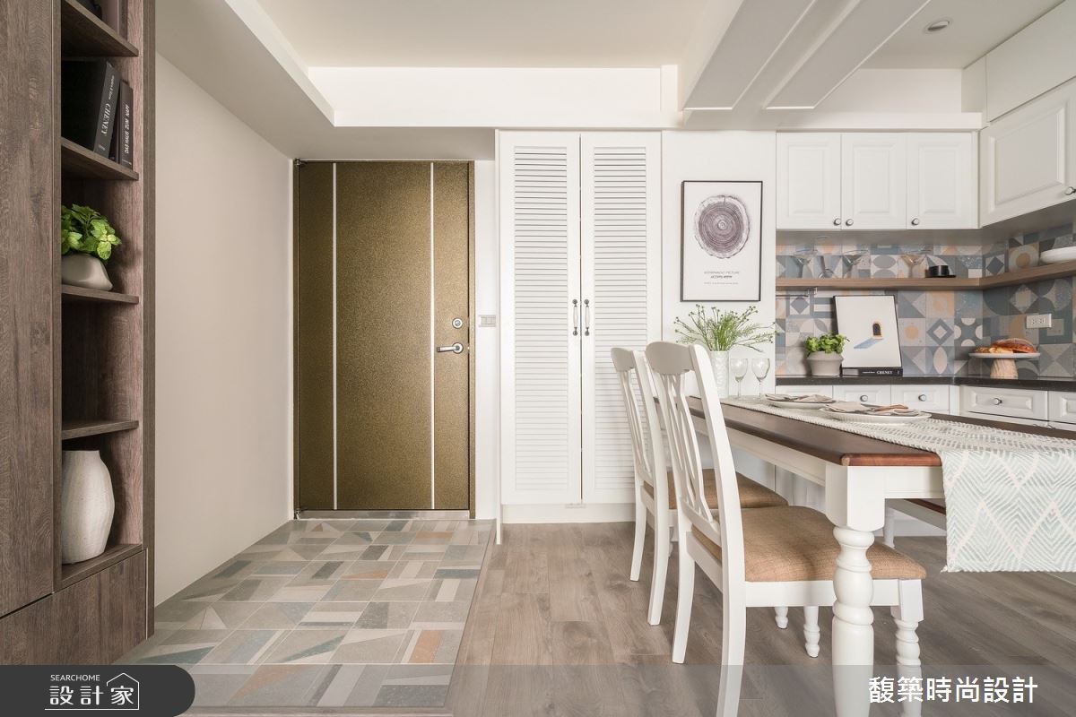 來自馥築時尚設計的56坪簡約風住宅案,屋主一家人共有2位長輩,是一間單層預售屋的三房格局,設計師藉由建材以進口義大利磚、超耐磨木地板、天然木皮板、金屬鐡件、珪藻土、塌塌米的搭配應用,實現一家人的理想生活。