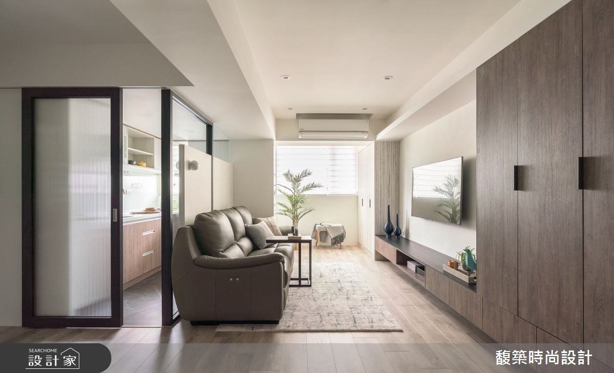由馥築時尚設計精心規劃的17坪兩房住宅空間,家庭成員一共有2位大人。因應屋主需求,設計師運用現代風作為主軸,搭配人造石材、耐磨木地板、美耐板、玻璃、天然木皮,打造全家人的夢想家居。