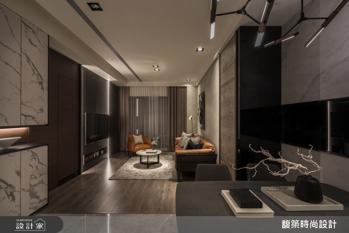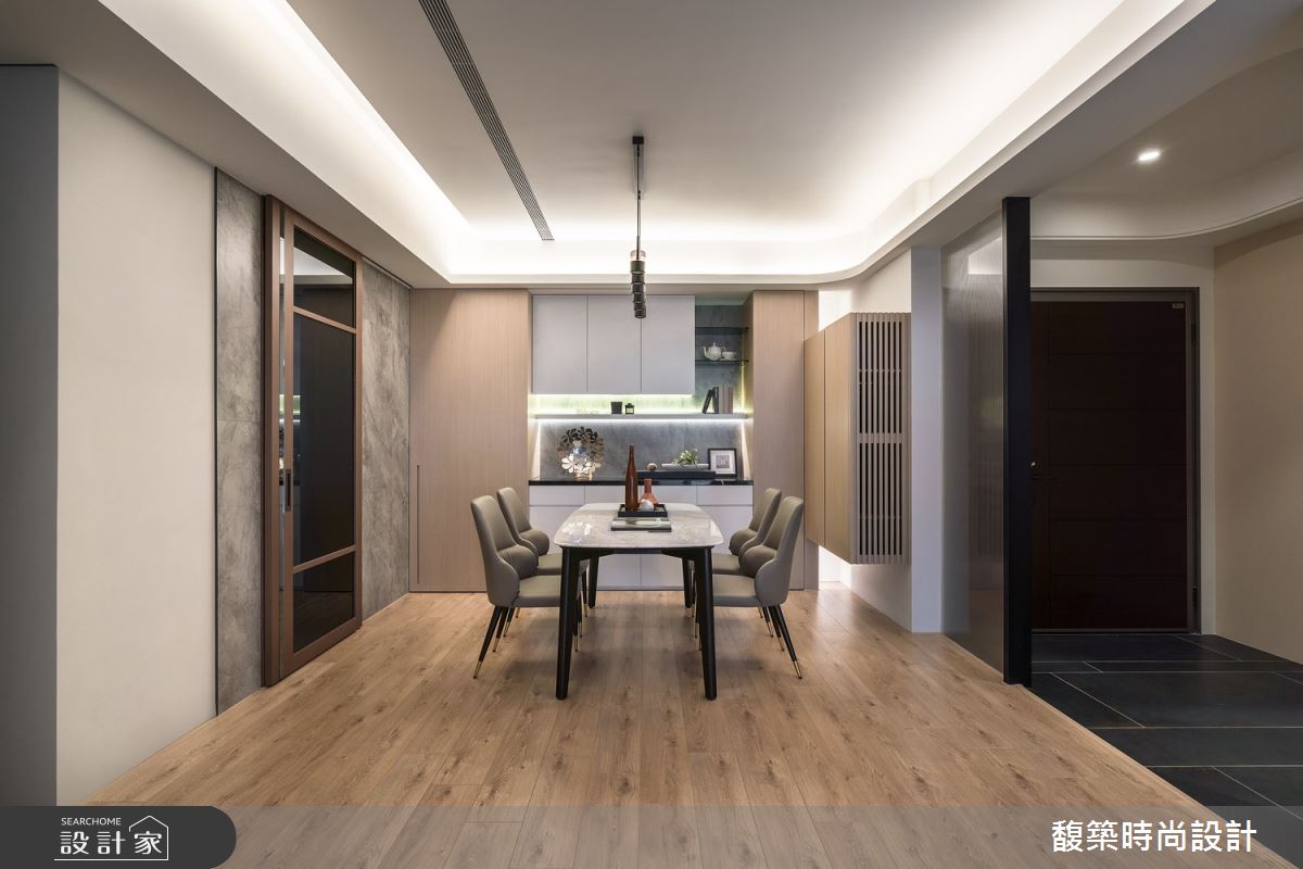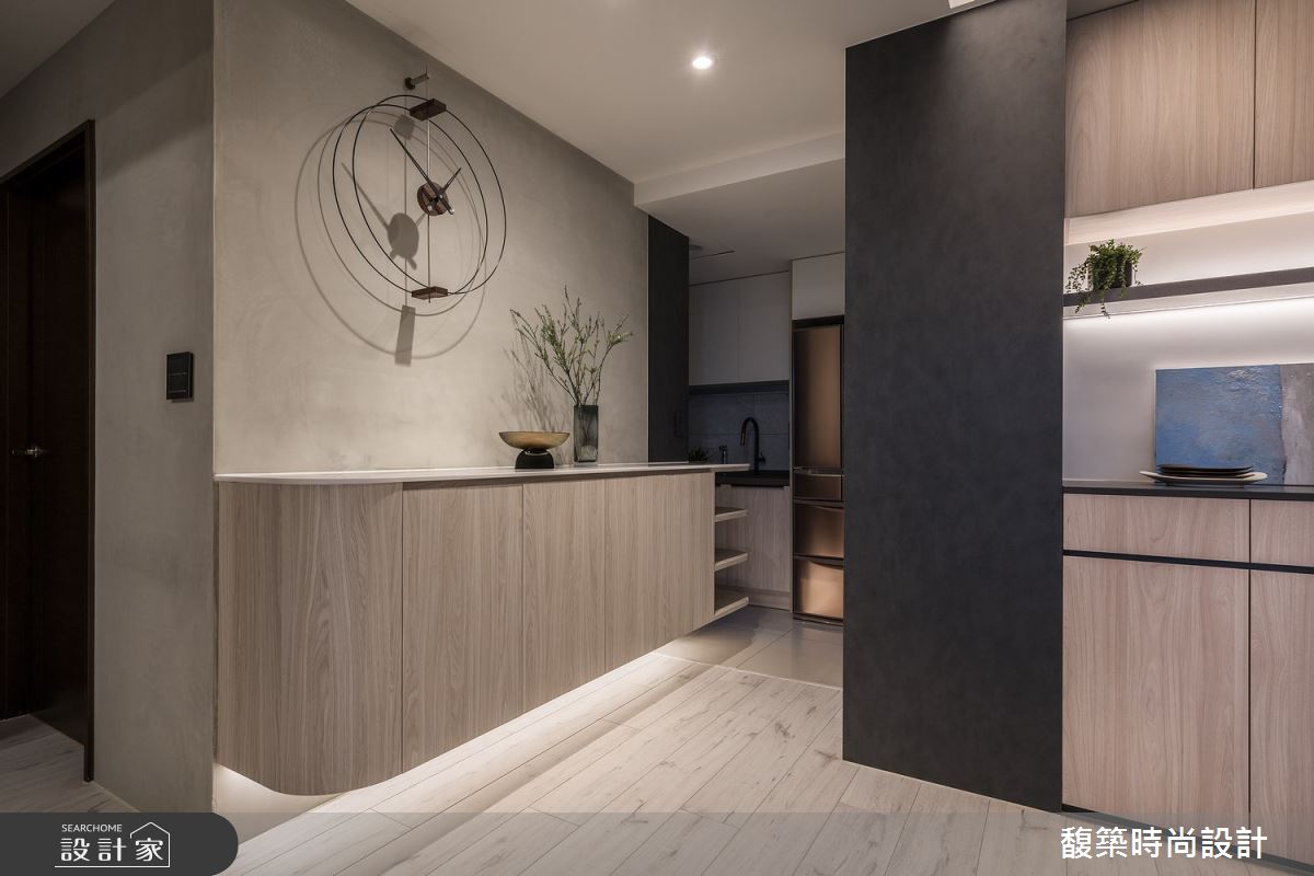 來自馥築時尚設計的55坪現代風住宅案,屋主一家人共有2位大人、1位小孩,是一間單層新成屋(5年以下)的兩房格局,設計師藉由建材以義大利進口磁磚、超耐磨木地板、KD木皮板、強化玻璃、天然大理石的搭配應用,實現一家人的理想生活。