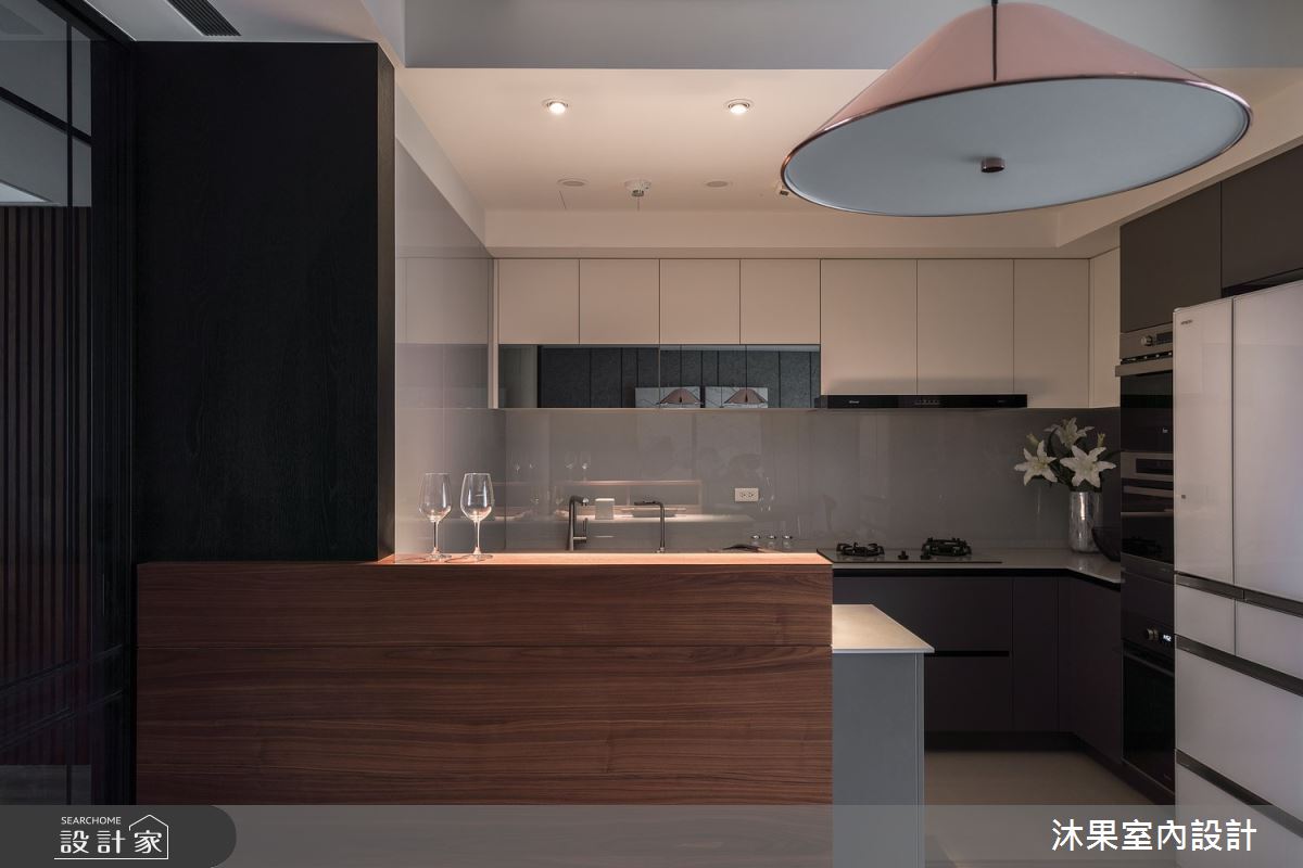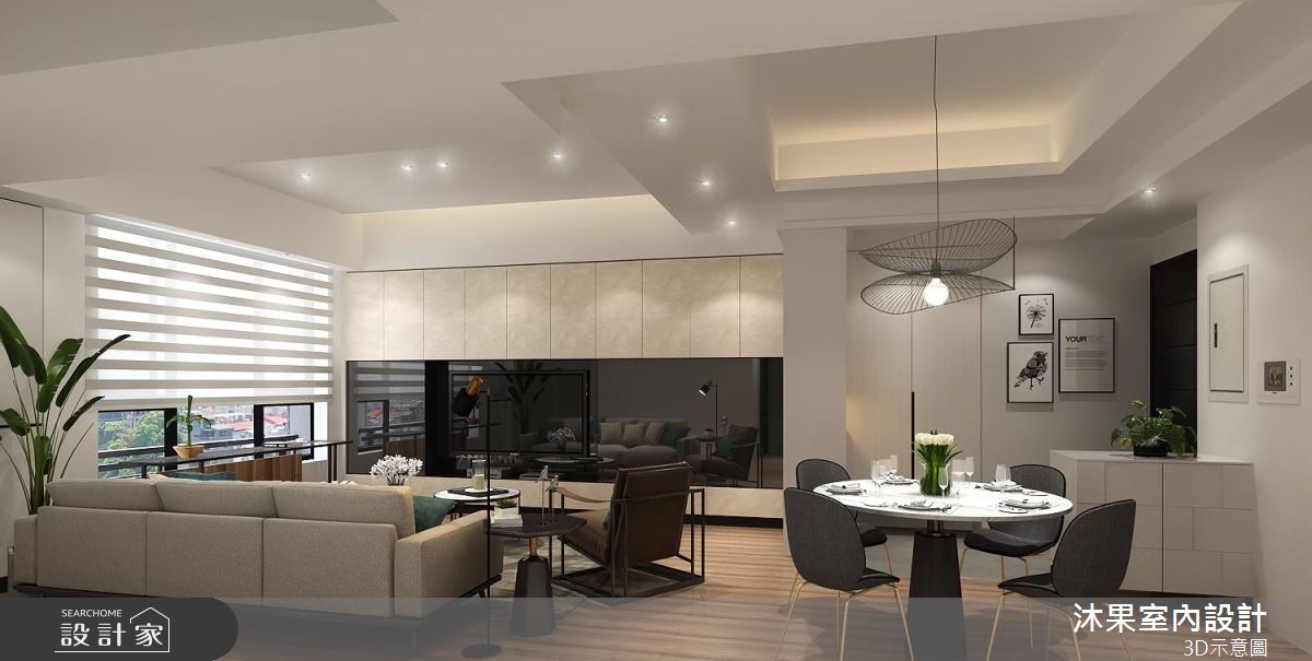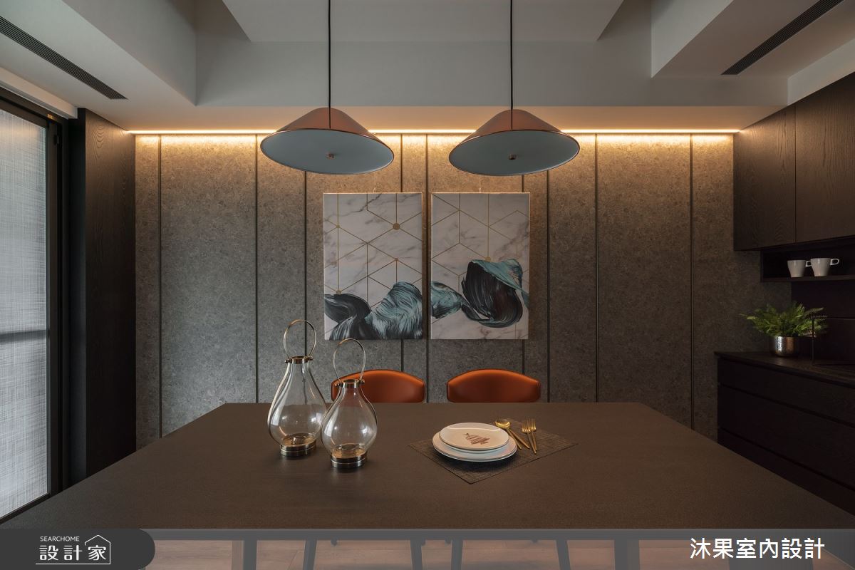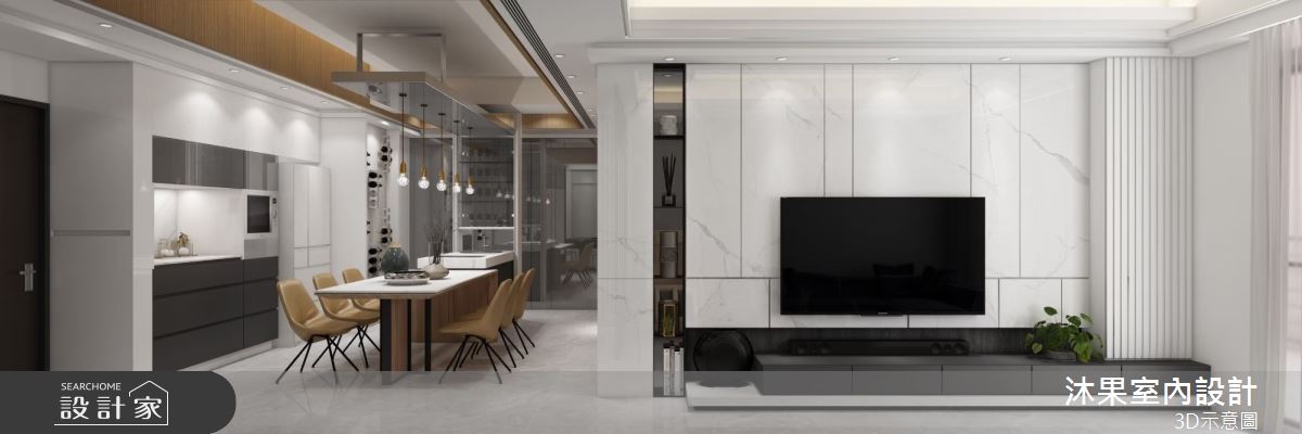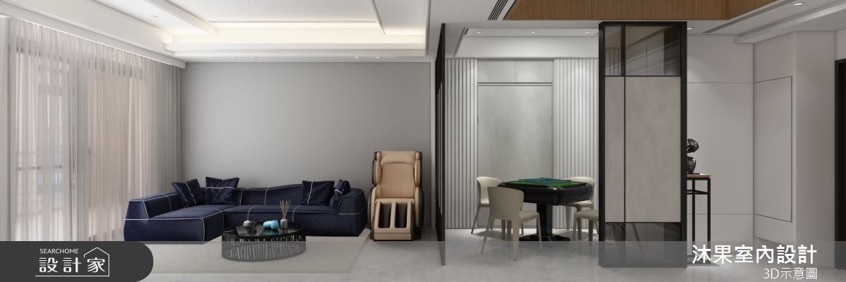 由沐果室內設計精心規劃的30坪三房住宅空間,家庭成員一共有3位大人。因應屋主需求,設計師運用現代風作為主軸,搭配乳膠漆、壁紙、木地板、石英磚/拋光石英磚、鐵件、灰鏡、木作貼皮、烤漆、鋼刷木皮、系統板材、大理石、磁磚、木百葉、人造石、石材、繃布,打造全家人的夢想家居。