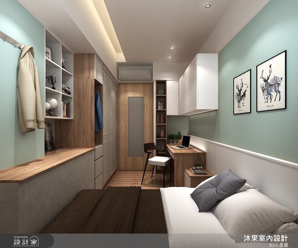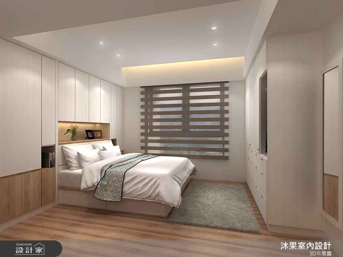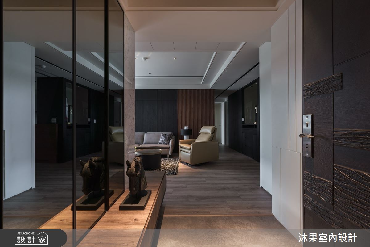 由沐果室內設計精心規劃的30坪三房住宅空間,家庭成員一共有3位大人。因應屋主需求,設計師運用現代風作為主軸,搭配乳膠漆、壁紙、木地板、石英磚/拋光石英磚、鐵件、灰鏡、木作貼皮、烤漆、鋼刷木皮、系統板材、大理石、磁磚、木百葉、人造石、石材、繃布,打造全家人的夢想家居。