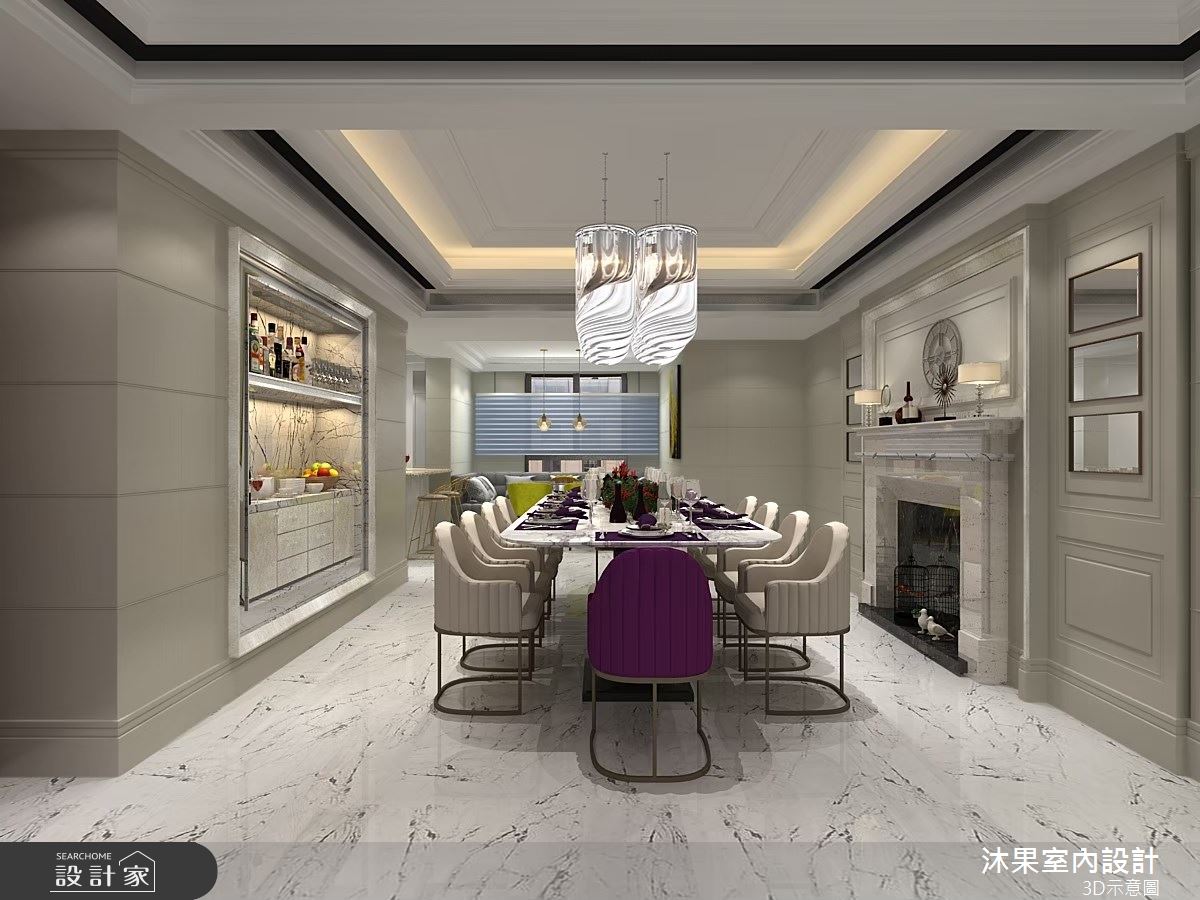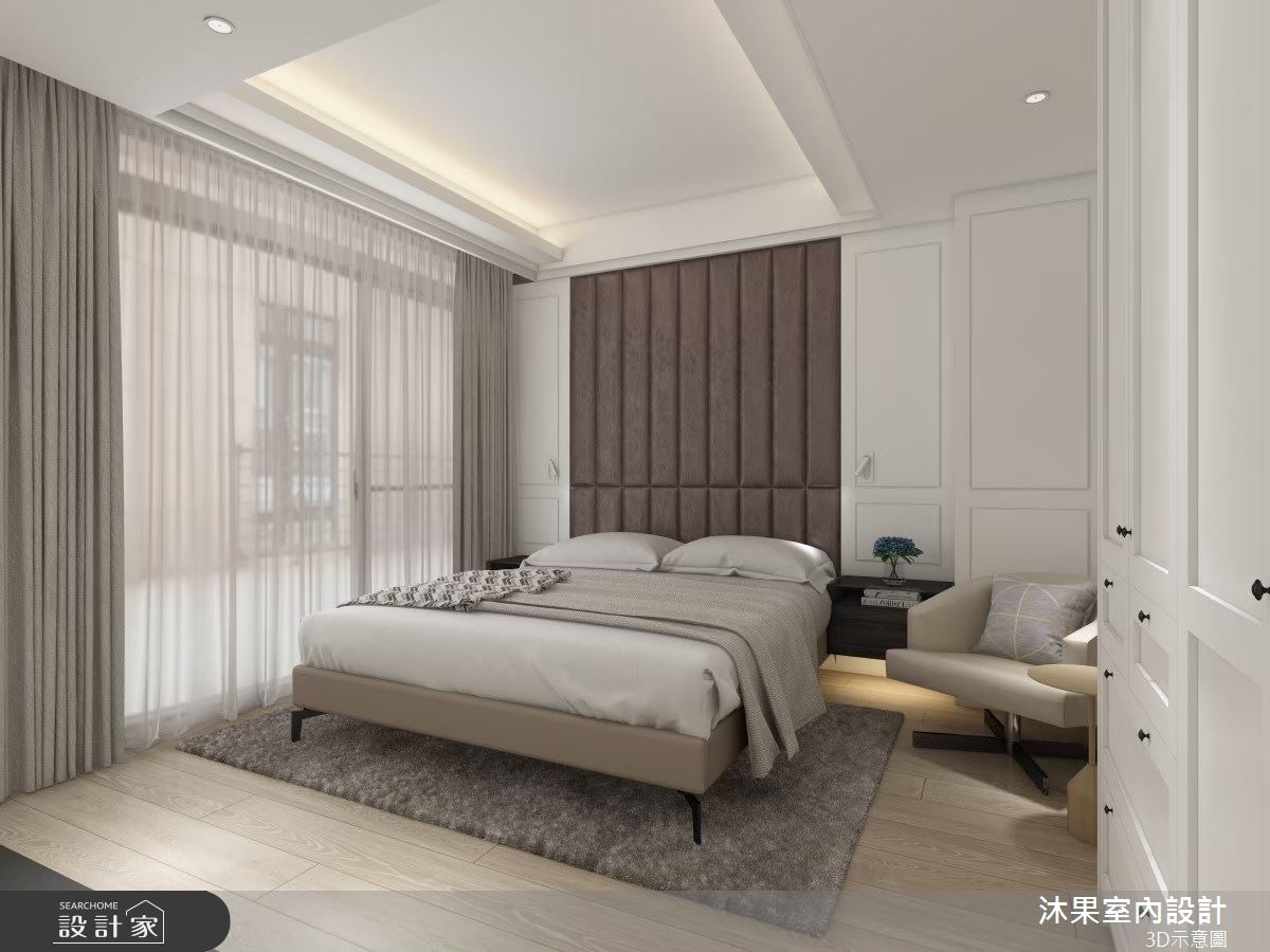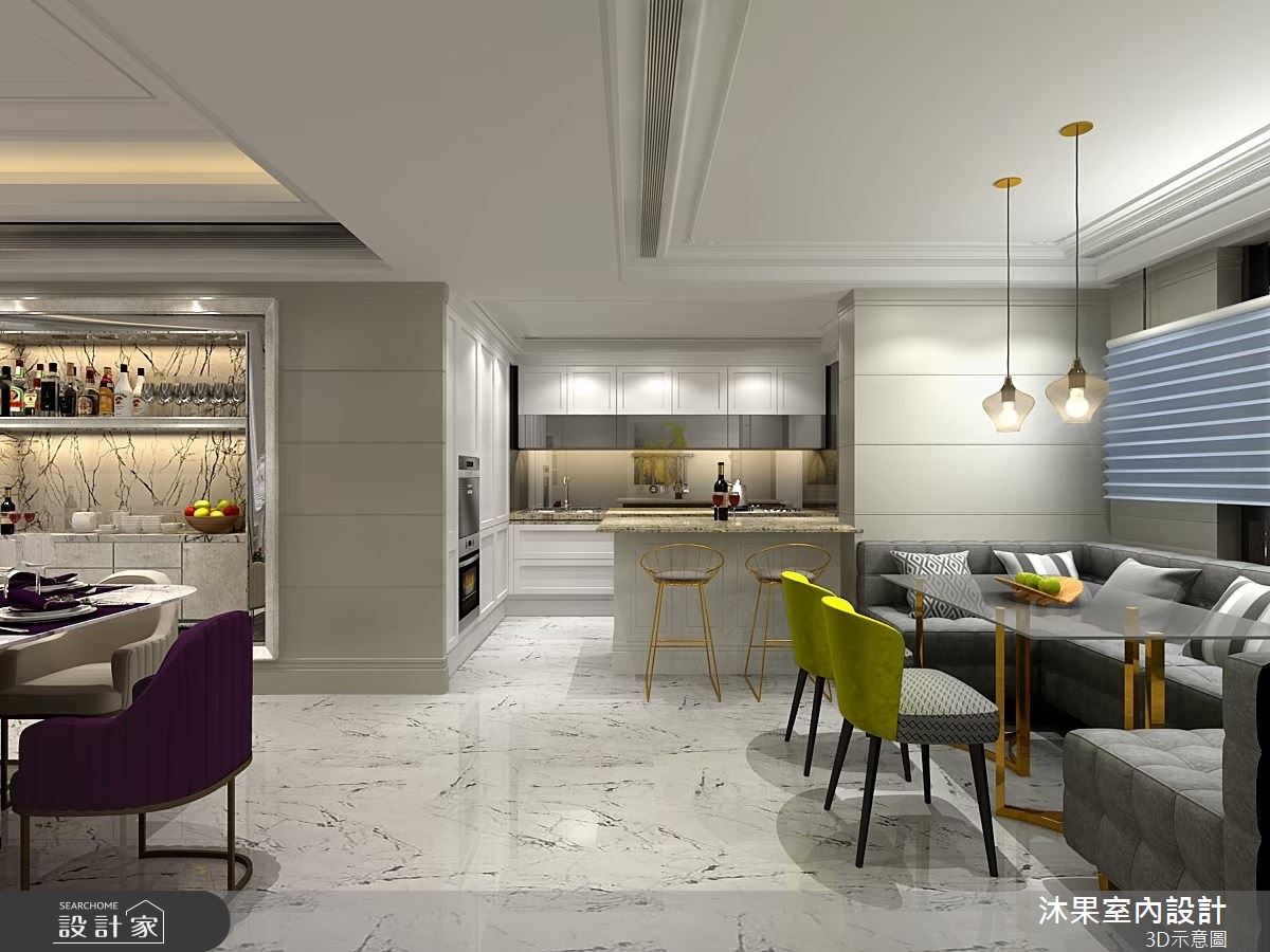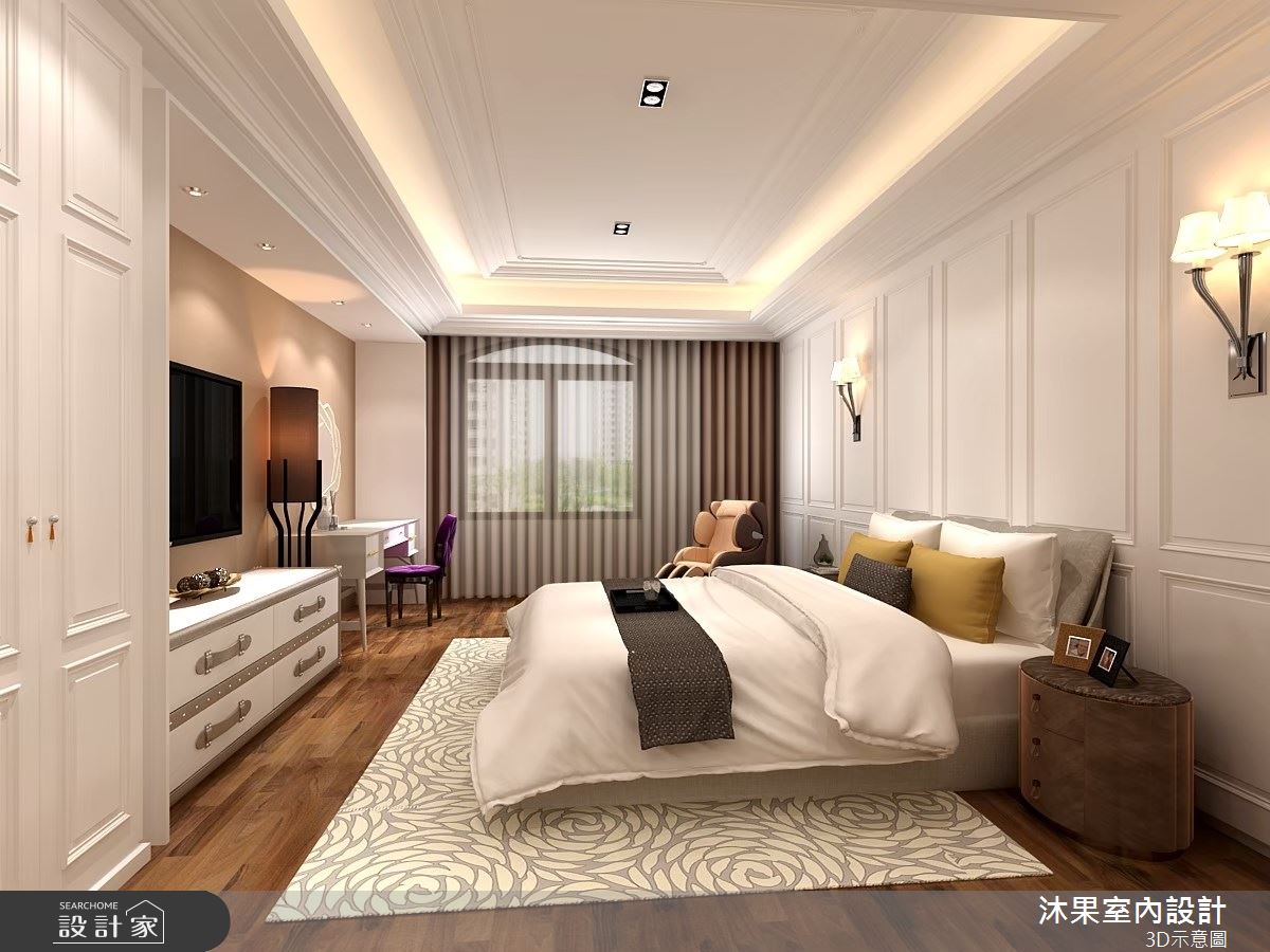 由沐果室內設計精心規劃的52坪三房住宅空間,家庭成員一共有1位大人、1位小孩。因應屋主需求,設計師運用新古典作為主軸,搭配乳膠漆、壁紙、木地板、石英磚/拋光石英磚、不鏽鋼、鐵件、灰鏡、茶玻、烤玻、鍍鈦金屬、木作貼皮、烤漆、鋼刷木皮、系統板材、大理石、磁磚、木百葉、人造石、皮革、石材、繃布、線板、噴漆、噴砂玻璃,打造全家人的夢想家居。