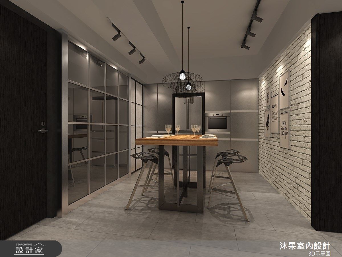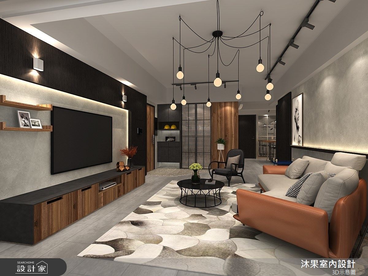 來自沐果室內設計的35坪工業風住宅案,屋主一家人共有2位大人、2位小孩,是一間單層老屋(16~30年)的三房格局,設計師藉由建材以鐵件、軌道燈的搭配應用,實現一家人的理想生活。