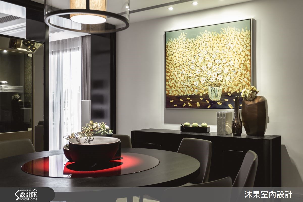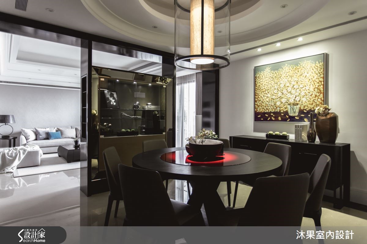 空間設計是一種表演,將動線化為故事脈絡,以軟件、色彩、材質凝造氛圍,讓居者可以盡情當主角,演出自己的生活。一間位於桃園 55 坪的住宅,在設計師的規劃之下,型塑流暢的動線,且不刻意強調制式風格,以奢華作為底調,融入現代感與東方元素,賦予每個場域不同的風貌,快跟著小編一起走進來看看吧! 客廳以輕淺的色彩基調營造明亮氛圍,並以在灰底背牆加入金屬線性邊框,舒展牆面的立體尺度,且加入現代沙發、中式感桌燈營造工整畫面,展現中西交融的經典優雅,而電視牆兩側則保留透空,形成客、餐廳之間的流暢回字動線;並讓電視牆背向作為珍品展示櫃,替餐區注入東方人文之美,採以圓桌搭配柱狀吊燈,在現代機能內融入中式元素,打造富麗溫馨的氣息,一側牆面則裝飾藝術畫作,不僅美化牆面,更柔化了東方傳統的濃郁性;來到臥房,則可見床頭鋪述木皮結合亮澤感繃布,展現細膩且奢華的工藝,並讓電視牆做出上下透空處理,保有場域之間光線、空氣的密切流動! 小編的最愛 從方正的客廳場域,遊走到佈滿圓弧線條的中式餐區,處處可見設計師以圖形語彙彰顯空間風格,展現線條運用的精妙巧思;尤其餐區更透過圓形天花、柱狀燈飾,營造有如舞台 Spotlight 般的聚光意象,替餐桌饗宴拉開精采的序幕!