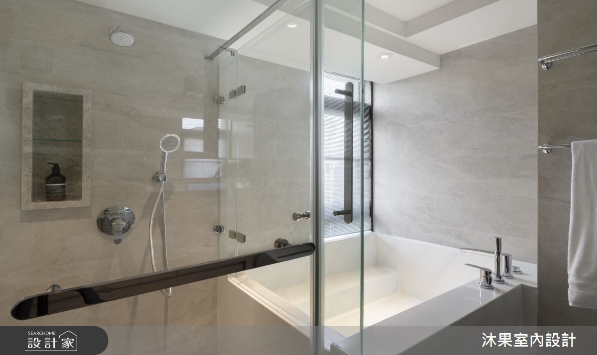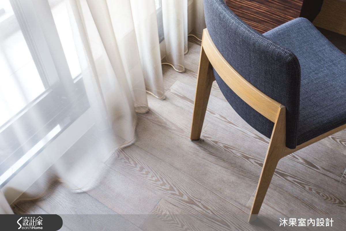 由沐果室內設計精心規劃的55坪四房住宅空間,家庭成員一共有2位大人、1位小孩。因應屋主需求,設計師運用現代風作為主軸,搭配壁紙、石英磚/拋光石英磚、鐵件、軌道燈、噴漆、玻璃、木皮、窗簾、系統櫃、塑木,打造全家人的夢想家居。