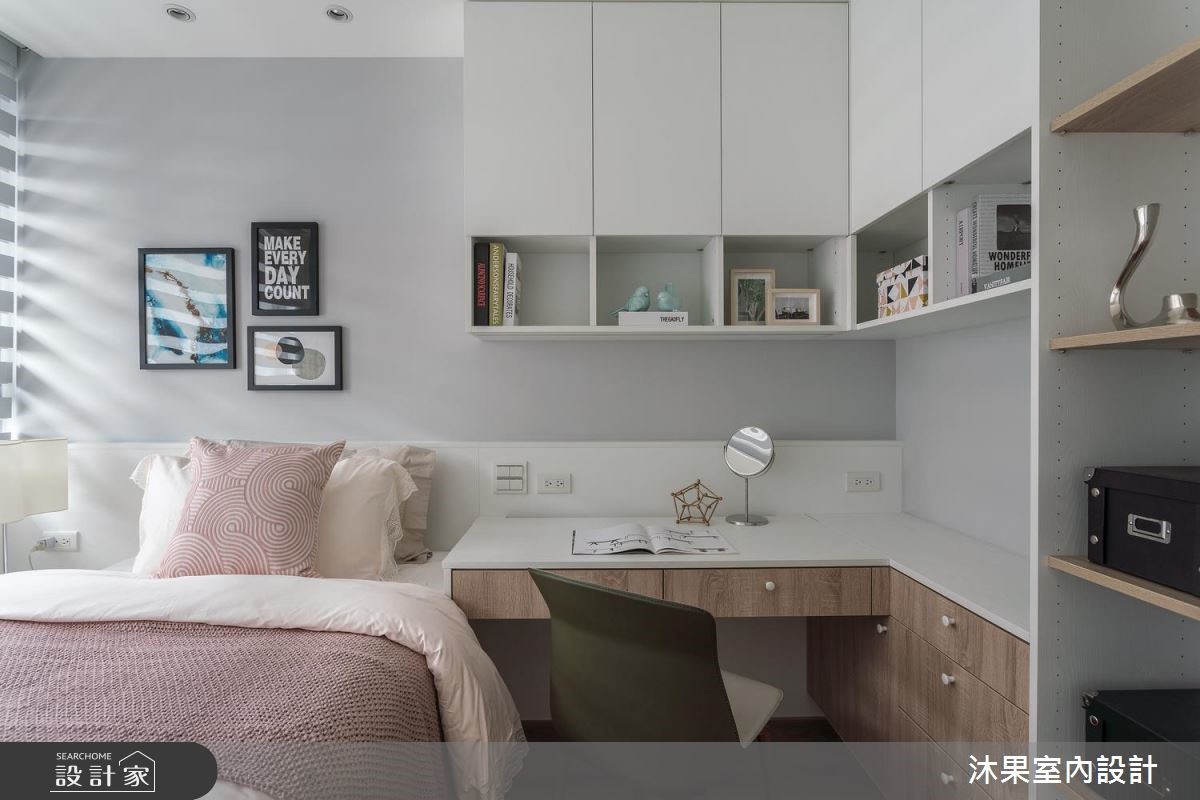 由沐果室內設計精心規劃的30坪三房住宅空間,家庭成員一共有3位大人。因應屋主需求,設計師運用現代風作為主軸,搭配乳膠漆、壁紙、木地板、石英磚/拋光石英磚、鐵件、灰鏡、木作貼皮、烤漆、鋼刷木皮、系統板材、大理石、磁磚、木百葉、人造石、石材、繃布,打造全家人的夢想家居。