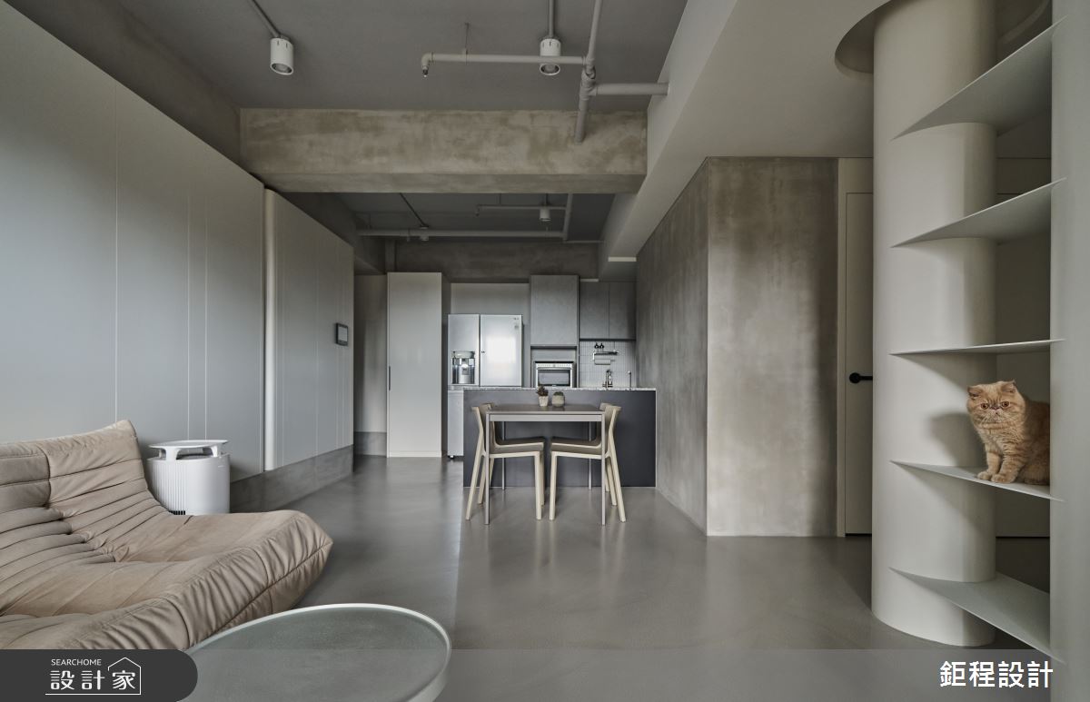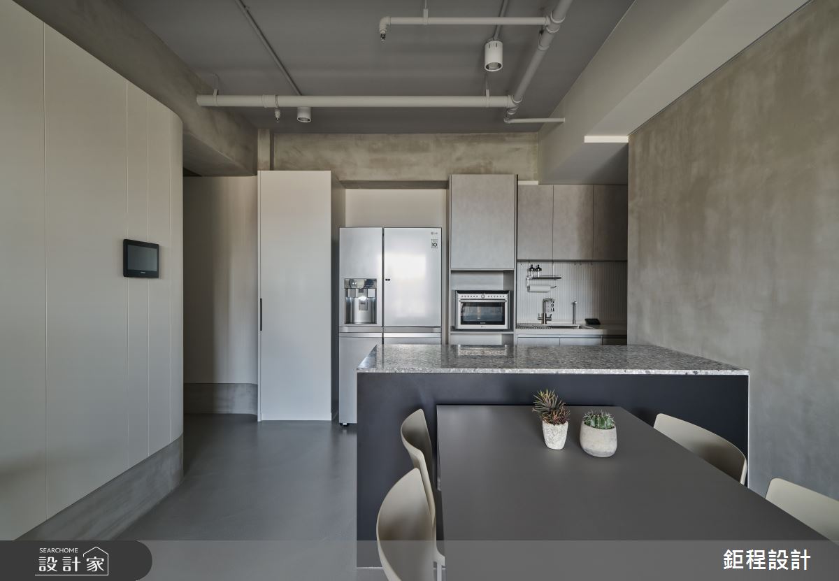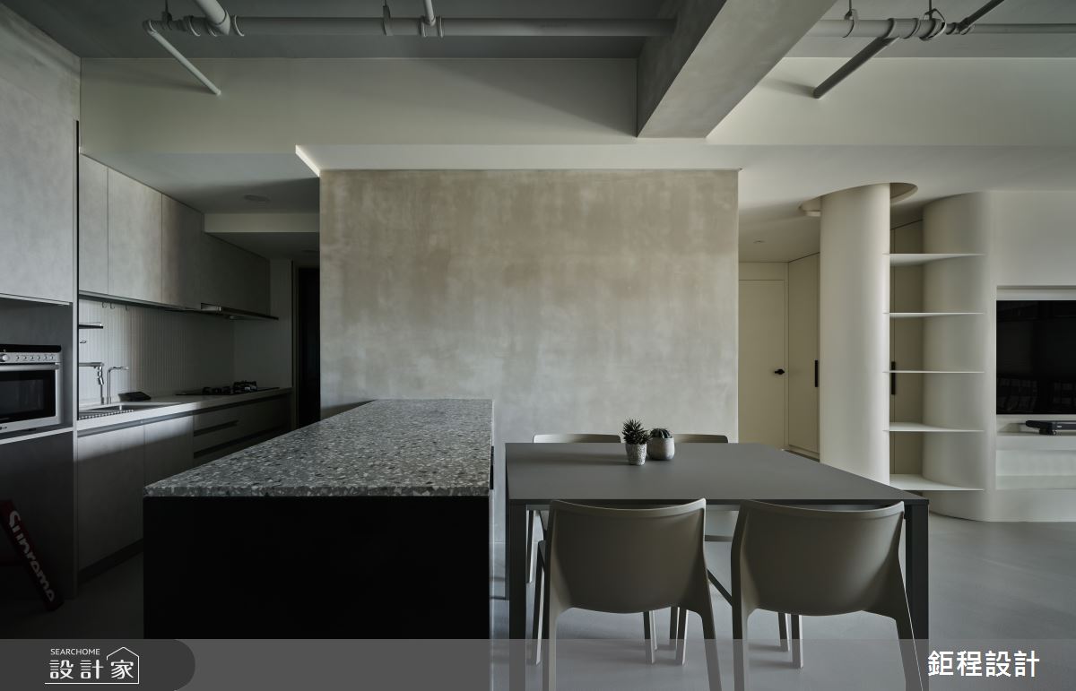 來自鉅程設計的50坪現代風住宅案,屋主一家人共有2位大人、2位小孩,是一間單層新成屋(5年以下)的四房格局,設計師藉由建材以水磨石、優的鋼石、特殊塗料、鐵件、玻璃、塗裝板的搭配應用,實現一家人的理想生活。