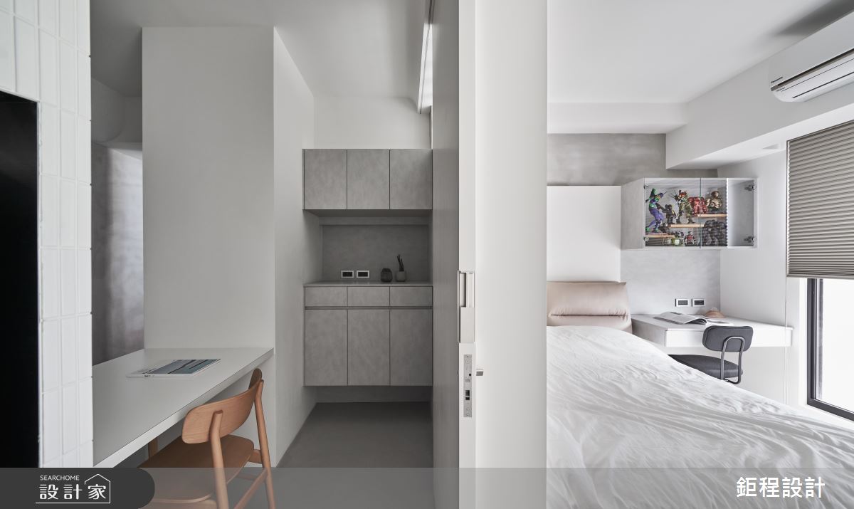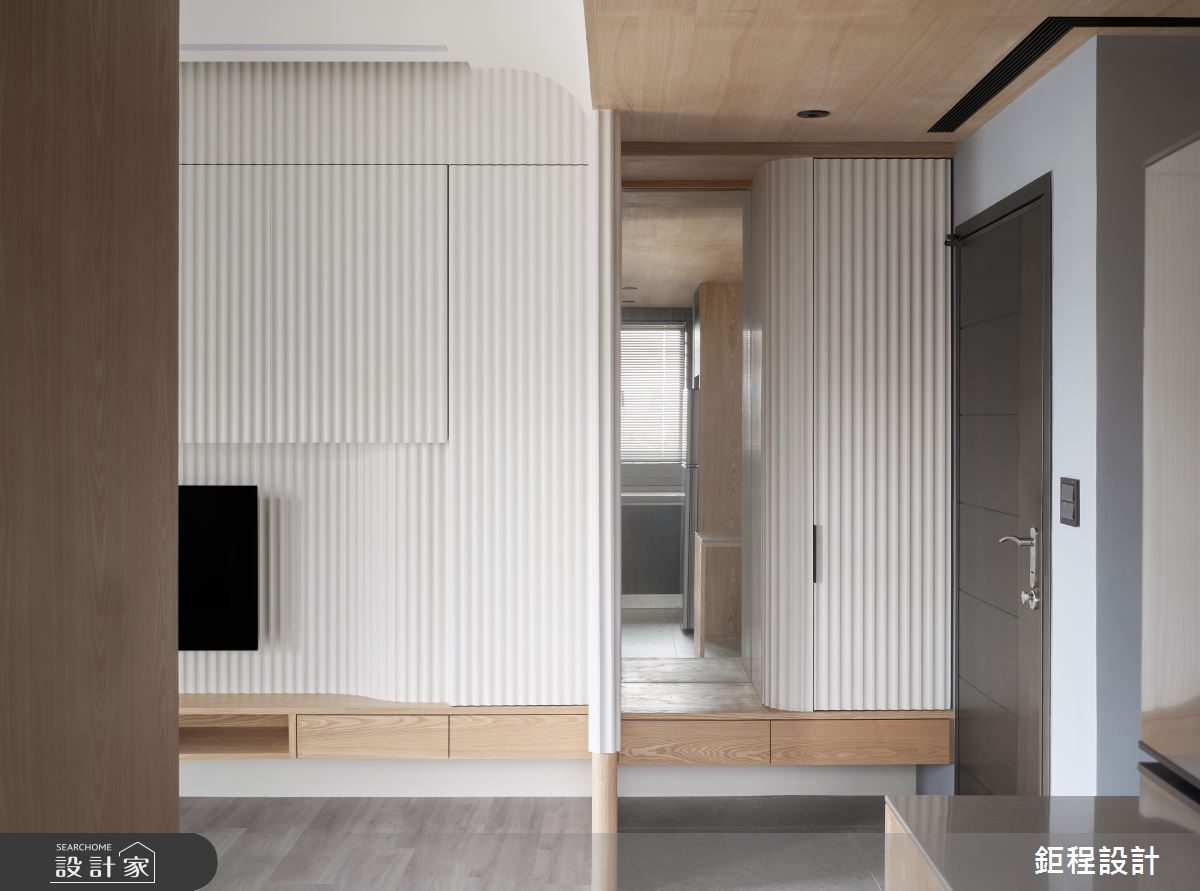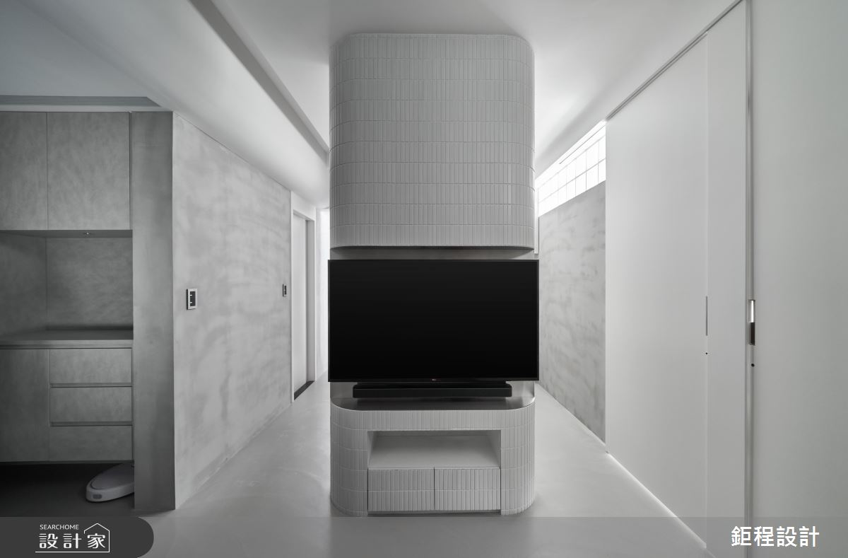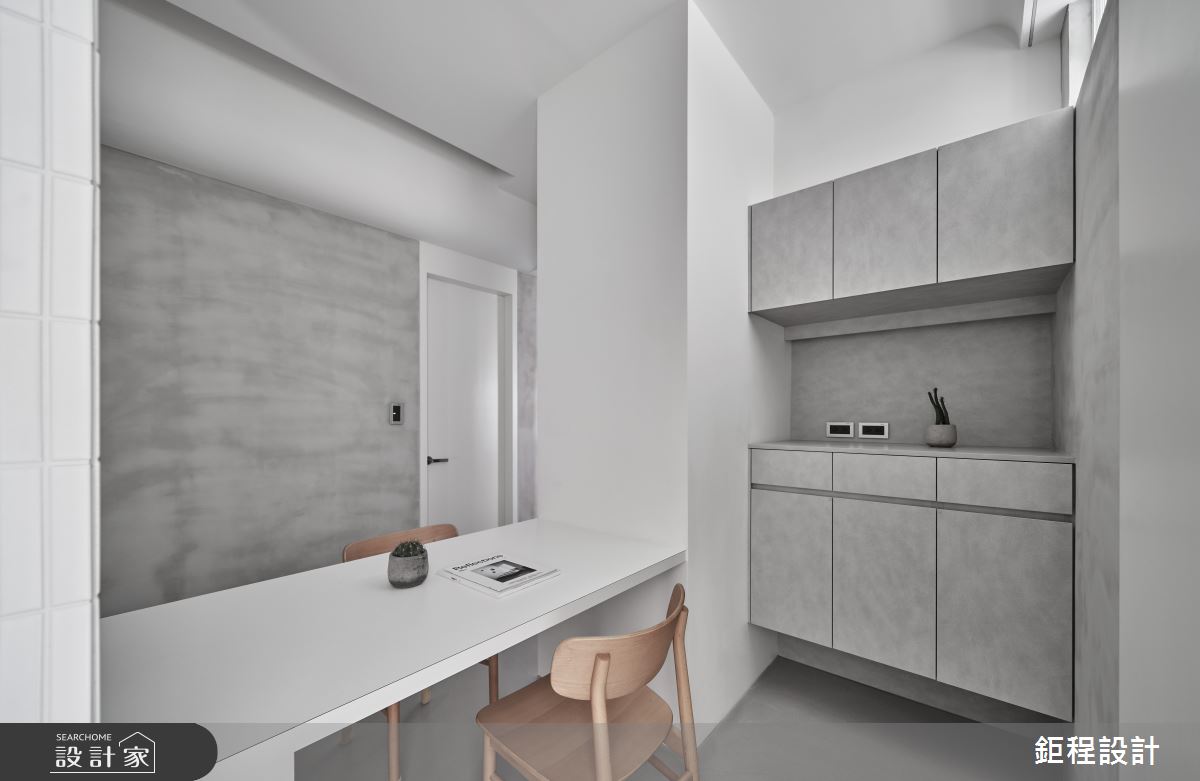 鉅程設計以不鏽鋼、磁磚、水泥/水泥粉光、噴漆、玻璃磚、優的鋼石的搭配應用,呈現現代風居家氛圍,將此間14坪、兩房、單層、新成屋(5年以下)打造成舒適愜意的家庭空間,完成1位大人全家人的夢想之居。