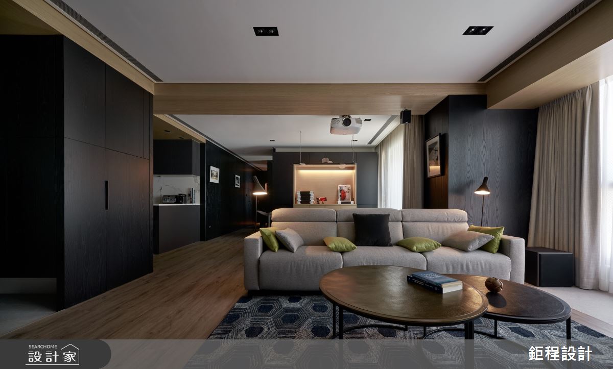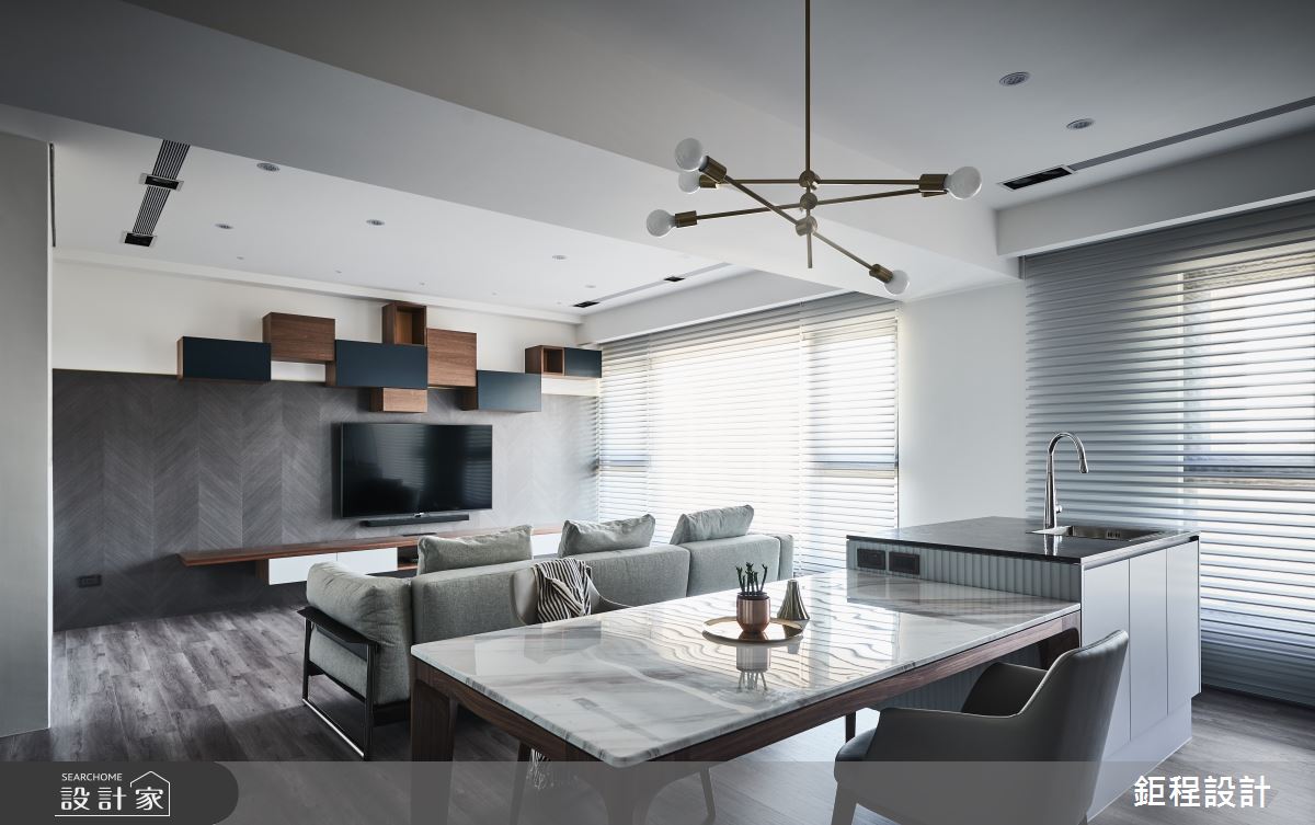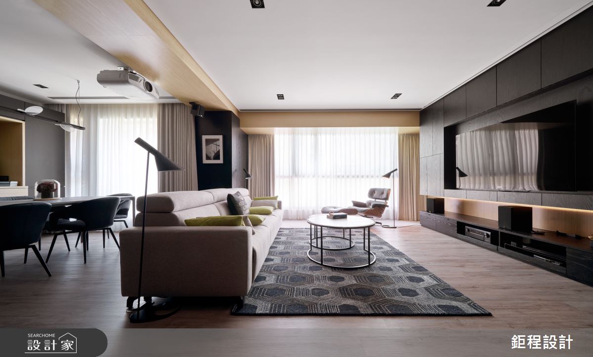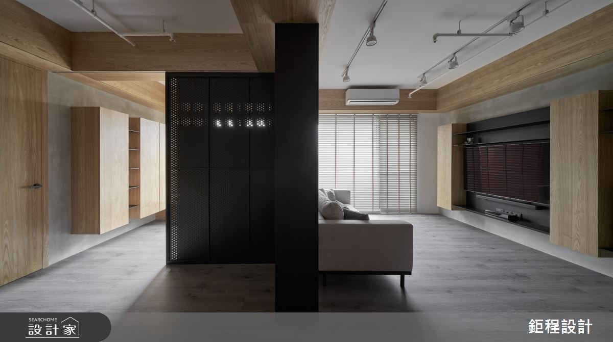 來自鉅程設計的55坪現代風住宅案,屋主一家人共有2位大人、1位小孩,是一間單層新成屋(5年以下)的兩房格局,設計師藉由建材以油漆、超耐磨木地板、鐵件、木作貼皮、噴漆、美耐板、霧玻璃的搭配應用,實現一家人的理想生活。