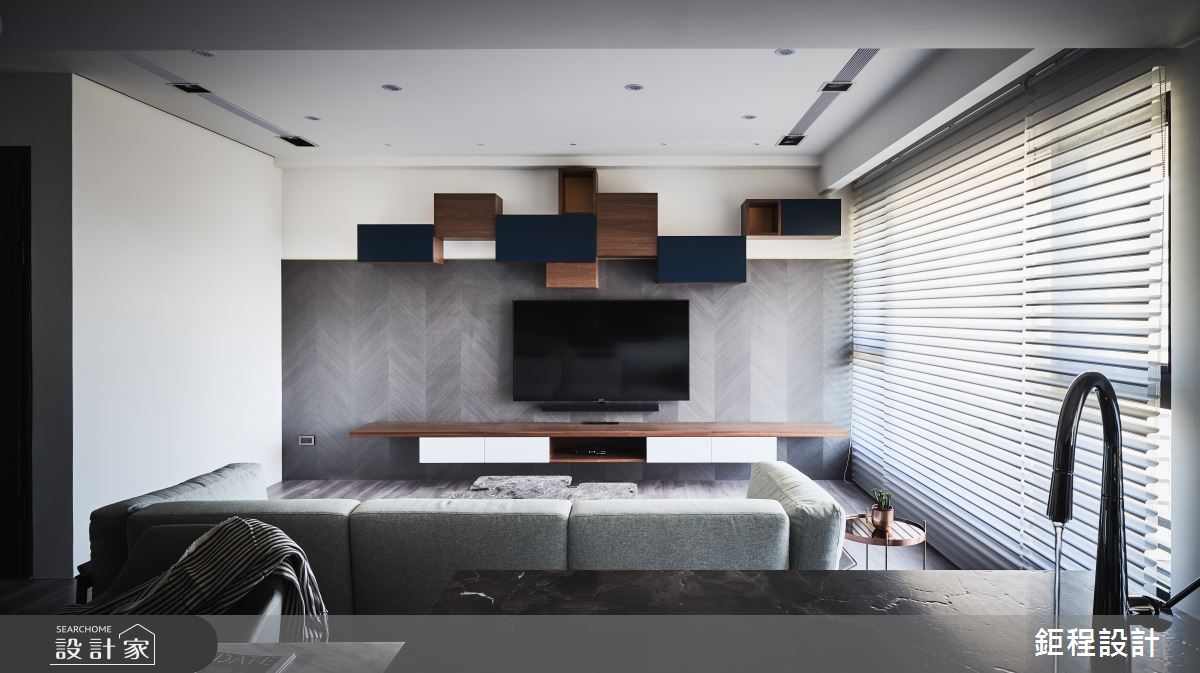 鉅程設計以不鏽鋼、磁磚、水泥/水泥粉光、噴漆、玻璃磚、優的鋼石的搭配應用,呈現現代風居家氛圍,將此間14坪、兩房、單層、新成屋(5年以下)打造成舒適愜意的家庭空間,完成1位大人全家人的夢想之居。