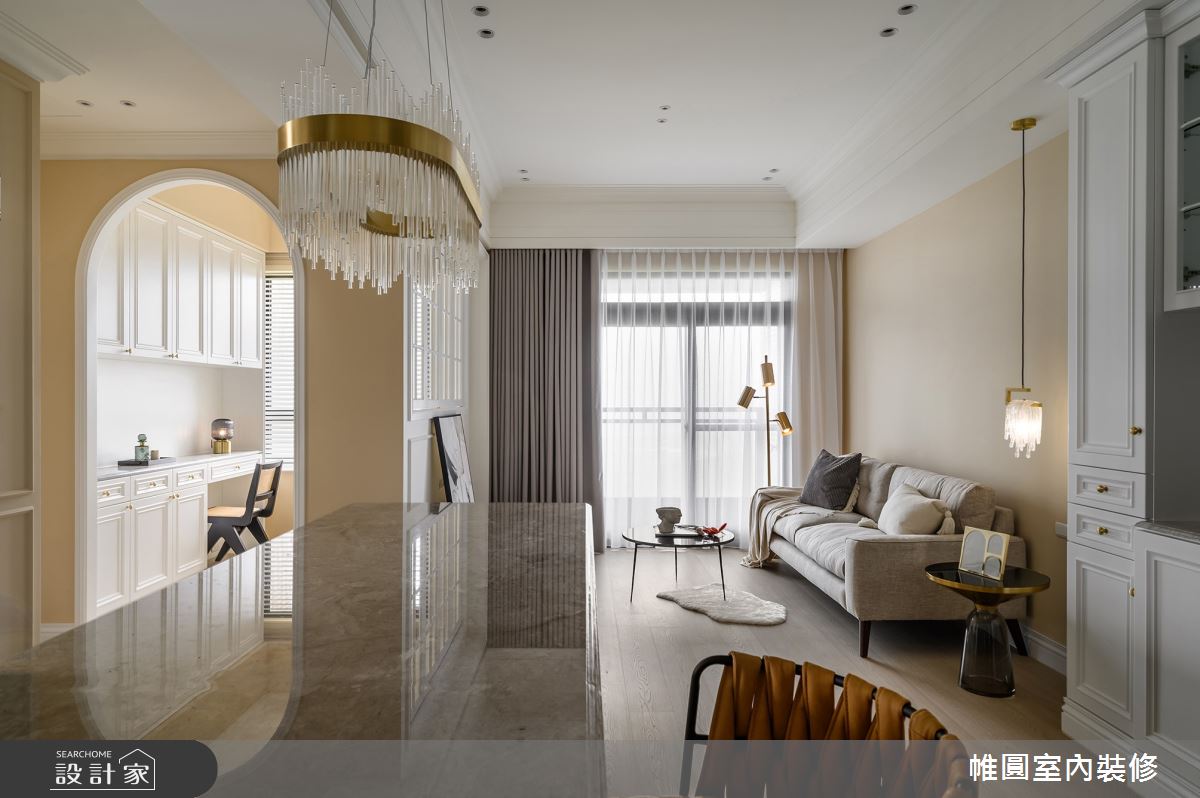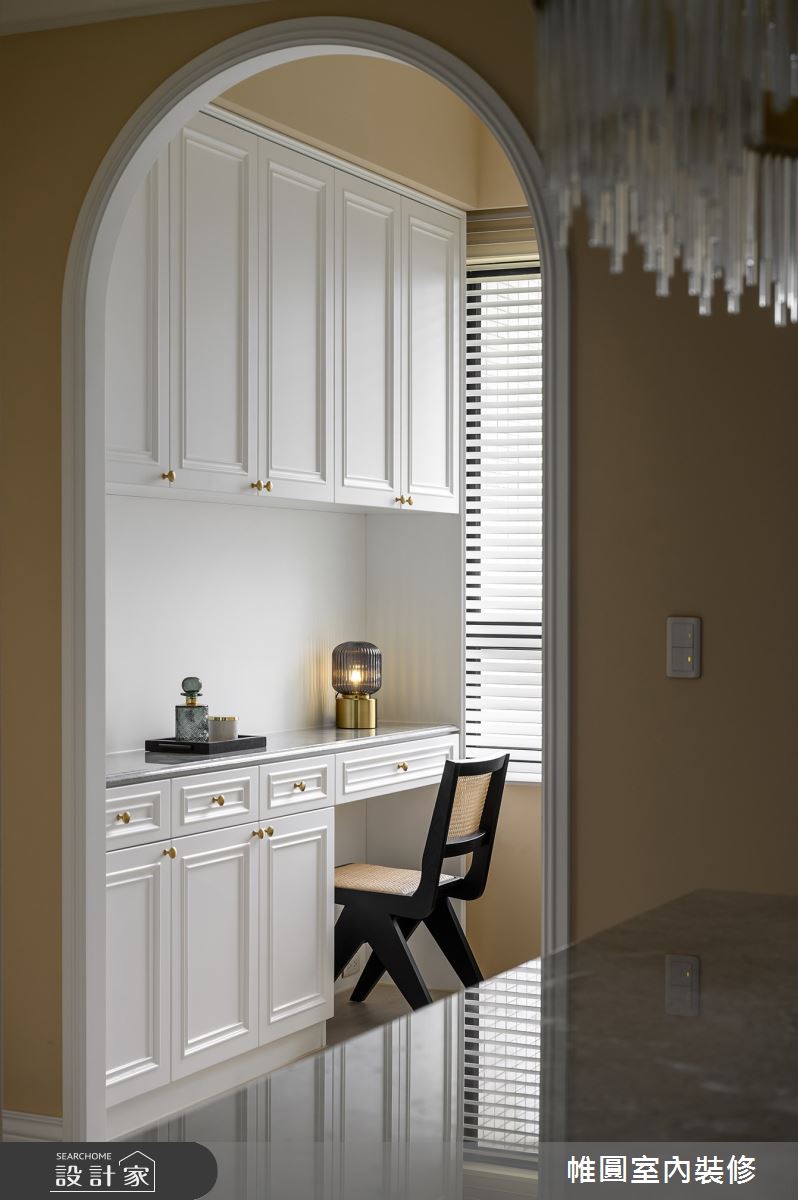 由帷圓‧定制 circle精心規劃的35坪四房住宅空間,家庭成員一共有2位大人、2位小孩。因應屋主需求,設計師運用美式風作為主軸,搭配壁紙、木地板、大理石、線板、進口花磚,打造全家人的夢想家居。