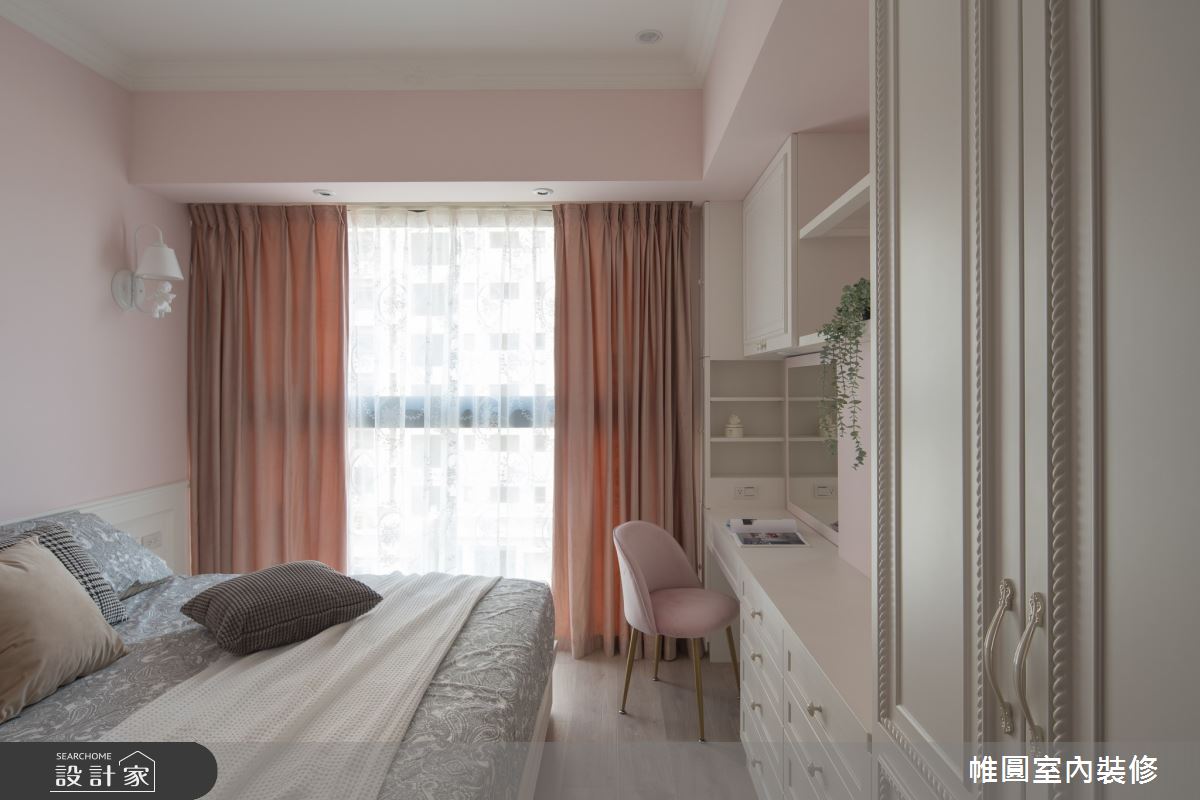 本案為帷圓室內裝修有限公司的40坪法式風新成屋(5年以下)設計作品,格局為單層三房的居住空間。全室建材的搭配,應用木地板、鐵件、線板、水磨石、黃銅,展現溫馨的居家氛圍。