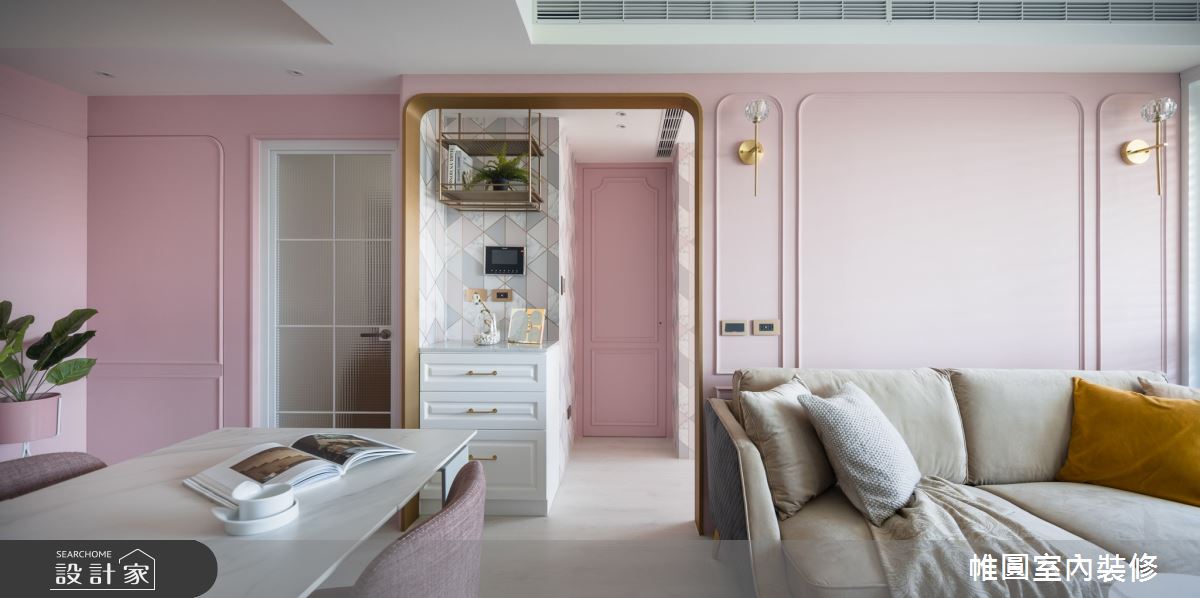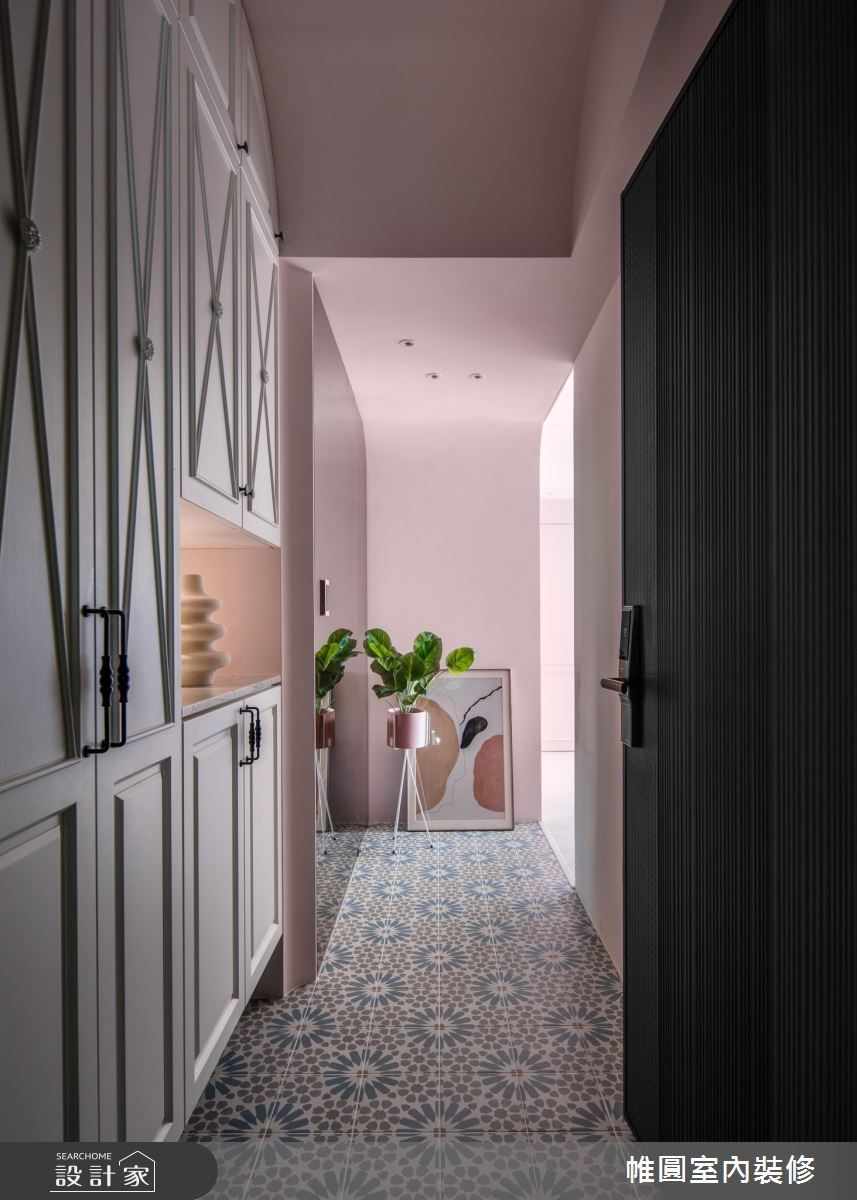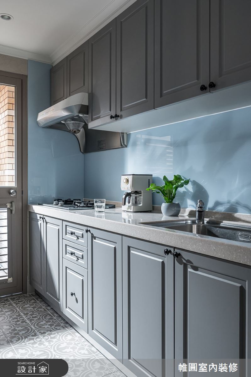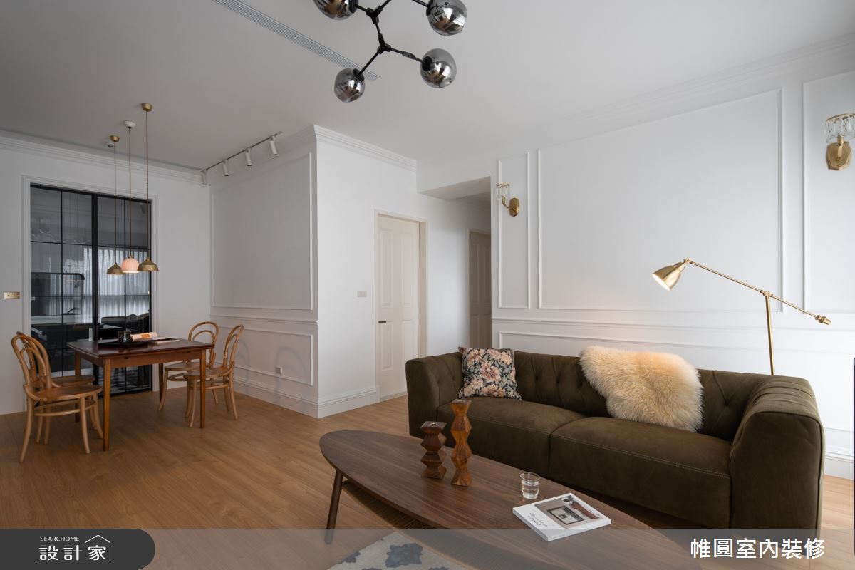 來自帷圓室內裝修有限公司的30坪美式風住宅案,屋主一家人共有2位大人,是一間單層中古屋(5~15年)的兩房格局,設計師藉由建材以花磚、樂土、線板、水磨石、人字拼地板的搭配應用,實現一家人的理想生活。