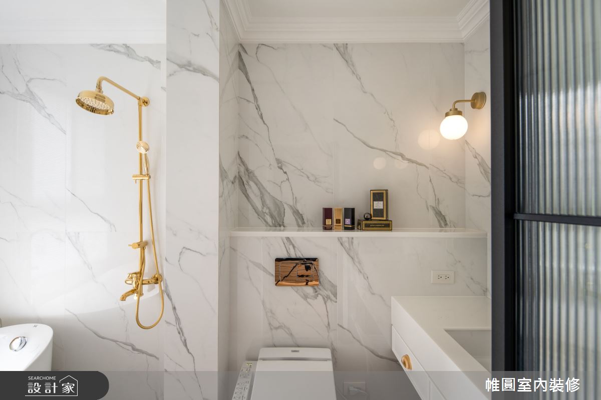 來自帷圓室內裝修有限公司的110坪現代風住宅案,屋主一家人共有2位大人、2位小孩、1位長輩,是一間單層新成屋(5年以下)的五房格局,設計師藉由建材以花磚、木地板、大理石、線板、裝飾板的搭配應用,實現一家人的理想生活。