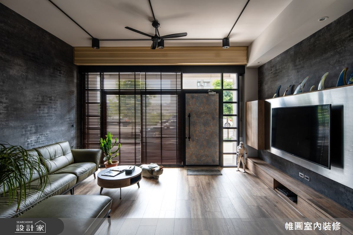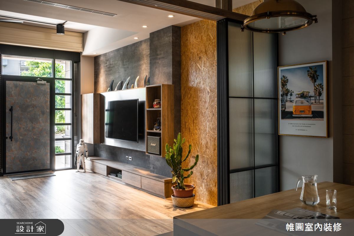 來自帷圓室內裝修有限公司的30坪工業風住宅案,是一間透天別墅新成屋(5年以下)的三房格局,設計師藉由建材以木地板、木作貼皮、美耐板、長虹玻璃的搭配應用,實現一家人的理想生活。