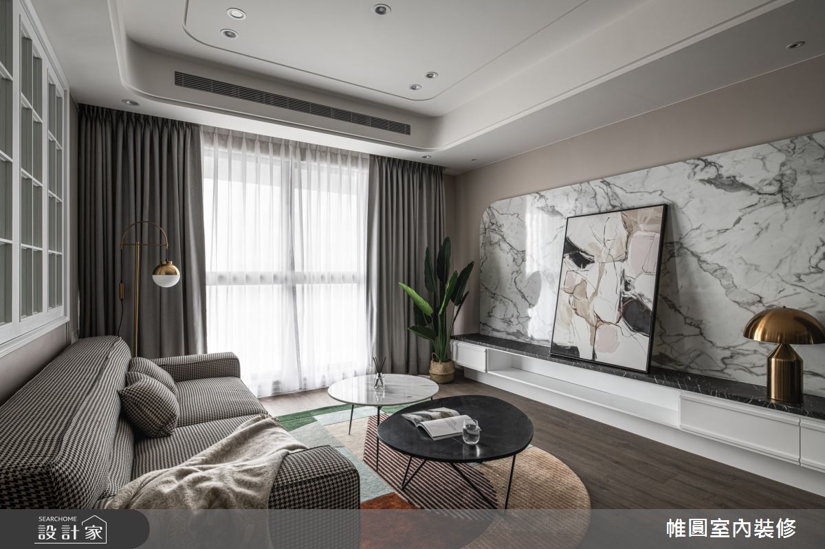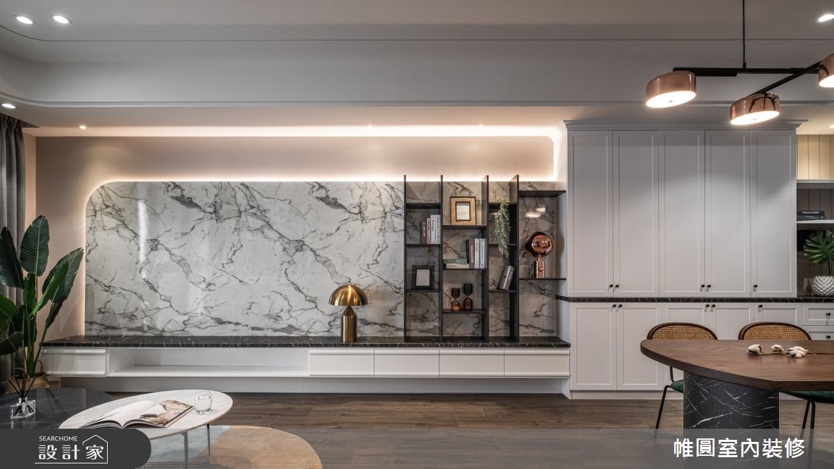由帷圓室內裝修有限公司精心規劃的52坪四房住宅空間。因應屋主需求,設計師運用人文禪風作為主軸,搭配木作貼皮、大理石、線板,打造全家人的夢想家居。
