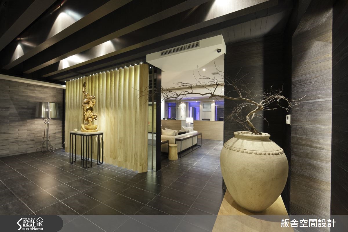 企業會館不像一般辦公空間,其目的以私人招待為主,除辦公功能外也規劃不少給來客稍加休憩的區域。位於台中市 140 坪的會館,其屋主為中年的企業家,本身偏好穩重之設計,因此設計師透過新古典風格打造出了兼具權威感但不拘謹的企業招待空間。 甫踏進玄關即可見氣勢滂沱的關公像,周圍利用深淺木質、燈光和盆栽擺設來襯托,使人一進會館即感受到其氣度不凡。整體空間配置以簡單明瞭的長型動線做規劃,每個區域之間採暗門設計,不刻意切割開來使空間呈現漸進層次感;每個獨立的區域皆在局部以共同的材質來相互對應與延續,共顯其一統的高質感。沙發休憩區採極簡的白色為主軸,除白磚牆外加入了新古典常運用的皮革素材,整體給人舒適、大方之感。會客室則以內斂的木原色與深色皮沙發為主體,冷靜中帶著一絲寧靜感,使來客能與業主在此簡單地商討事宜。為偶有貴賓至此,特地規劃了兼具視聽功能的貴賓室,揮別沈穩的色調,選用明亮色的素材為主,給人溫暖且安定的感覺,另外牆面利用不同材質的隔音材加以組合,加上雙層設計來解決其隔音問題。董事長室則宛如世外桃源,沒有任何繁複的色彩置入,全以沈著的深咖色之木質為主,讓業主能在此能安靜地辦公兼思考。 小編最愛 此會館除了規劃一般辦公空間外,亦另外規劃了吧台與用餐區,別於其他空間的公事意味濃厚,此區反倒多了份悠閒感,能在需要小憩之際在此稍作喘息。