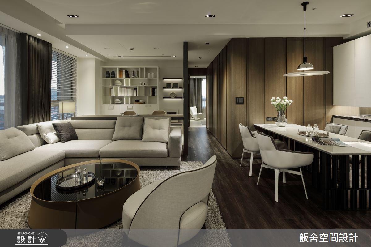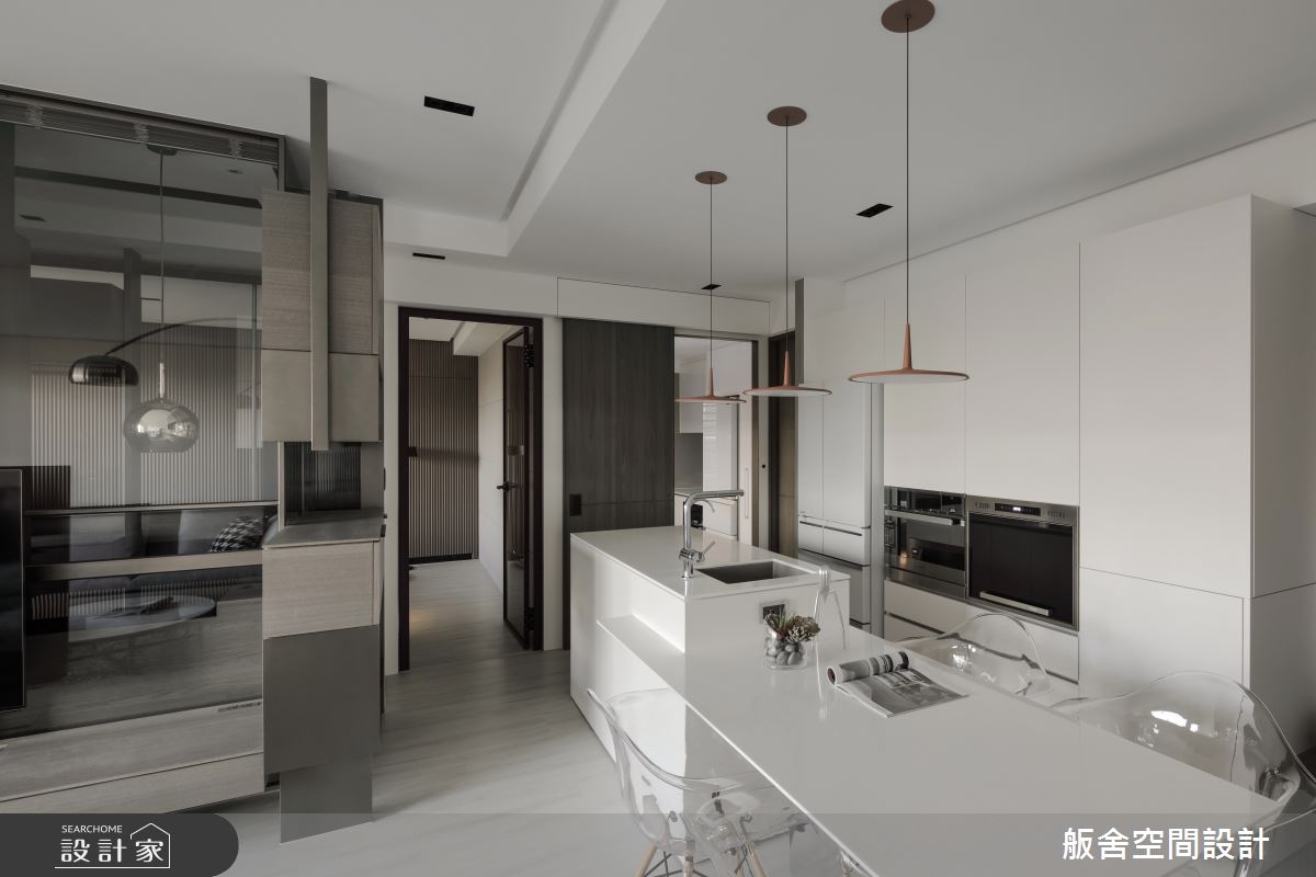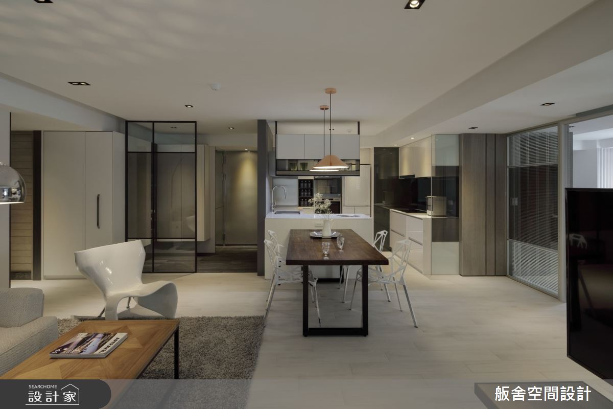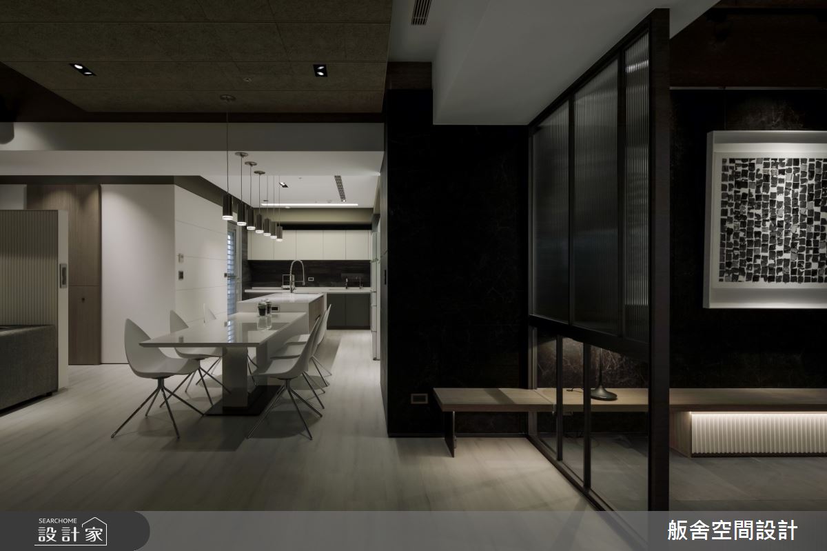來自舨舍空間設計的50坪現代風住宅案,屋主一家人共有2位大人、1位長輩,是一間單層新成屋(5年以下)的三房格局,設計師藉由建材以鐵件、鍍鈦金屬、大理石、金屬、SPC石塑地板、清水模、義大利薄磚的搭配應用,實現一家人的理想生活。
