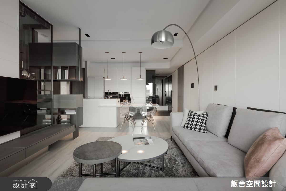 來自舨舍空間設計的21坪現代風住宅案,屋主一家人共有2位長輩,是一間單層預售屋的三房格局,設計師藉由建材以乳膠漆、壁紙、大圖輸出、PVC地板、鐵件、烤玻、鍍鈦金屬、木作貼皮、系統板材、磁磚、木百葉、皮革、石材、繃布的搭配應用,實現一家人的理想生活。