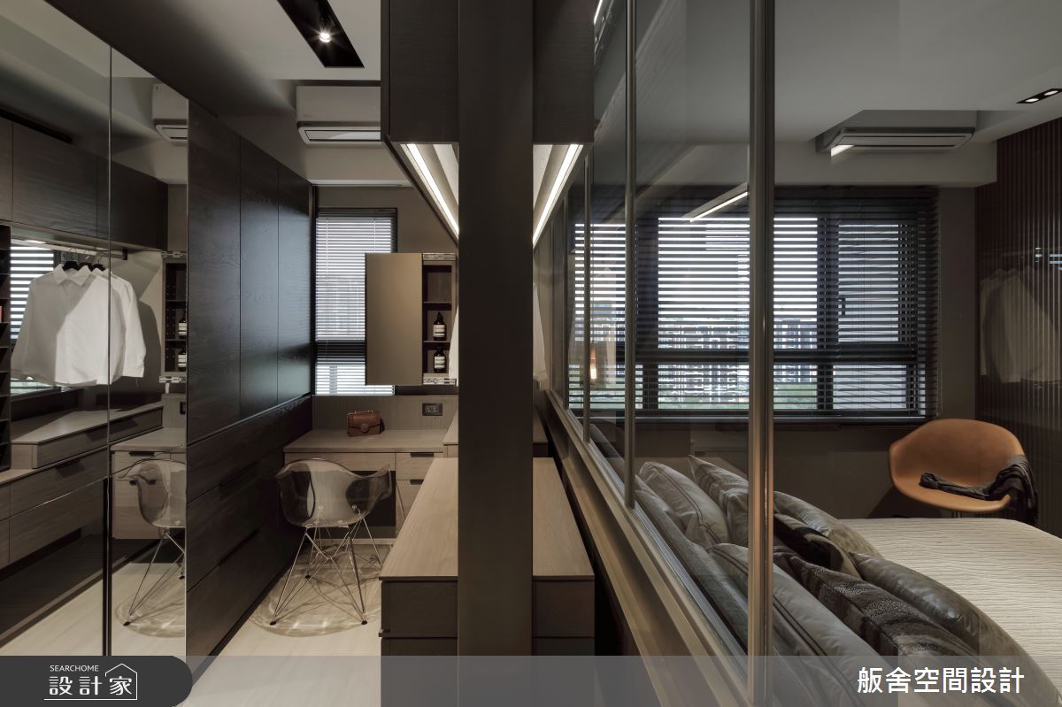 舨舍空間設計以帝雉石、長虹玻璃、海島型實木地板、木皮塗裝板、金屬、牛皮的搭配應用,呈現現代風居家氛圍,將此間29坪、兩房、單層、新成屋(5年以下)打造成舒適愜意的家庭空間,完成1位大人的夢想之居。