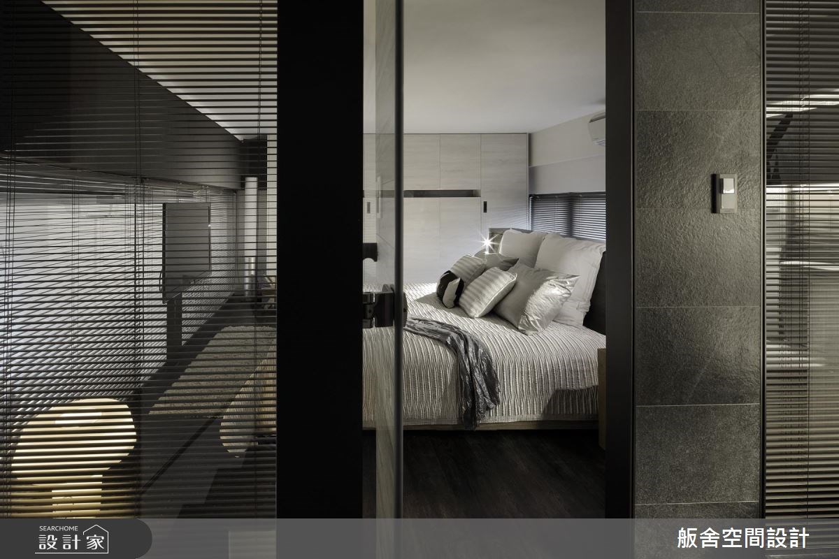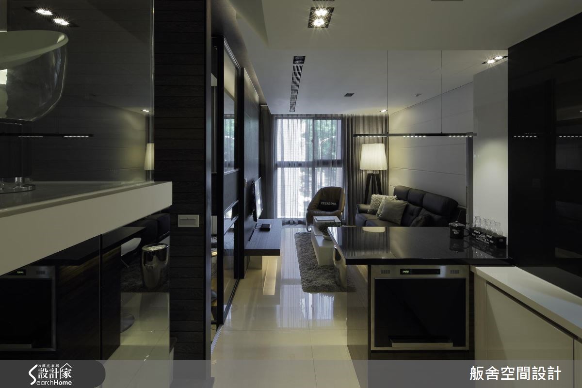 位於台北市的 18 坪住宅,是年輕夫妻的兩人世界,由於屋主本身喜愛音樂,於是設計師特地規畫一處置放爵士鼓的空間,且在各處注入彈性收納機能,創造小空間的最大坪效,並以不設限的混搭風做為空間基調,演奏出宛如爵士樂般的隨興氛圍! 打開家門,設計師刻意讓玄關鞋櫃採不落地懸浮設計,讓量體衍生輕盈感;客廳則以灰階闡述穩重主調,採義大利板岩磚建構電視主牆,同時點綴溫暖的木質,調和出宜人的居家色彩,並讓電視牆採半高設計,注入無阻視線,牆面後方則是小巧實用的書房場域,沿台階而上則可來到開放式樂器置放區,打造出宛如舞台般居高臨下的視野;餐廳則在吧檯上方安排一座清玻懸吊櫃體,藉由材質的通透特質,弱化量體壓迫感,再搭配燈光投射,營造展示趣味;臥房牆面則鋪述了整面淺灰調木皮,且將收納機能隱於立面之中,再搭配深色鐵件、白色床飾等,勾勒出俐落分明的空間調性! 小編的最愛 因考量到有限場域,並為了保留居家走道,設計師訂製專屬餐廳吧檯,將白色桌面板與吧檯疊合,拉出時即可成為一面餐桌,拓寬使用的檯面,讓用餐領域充滿使用彈性!