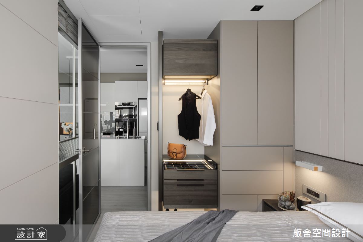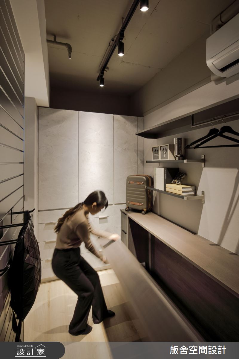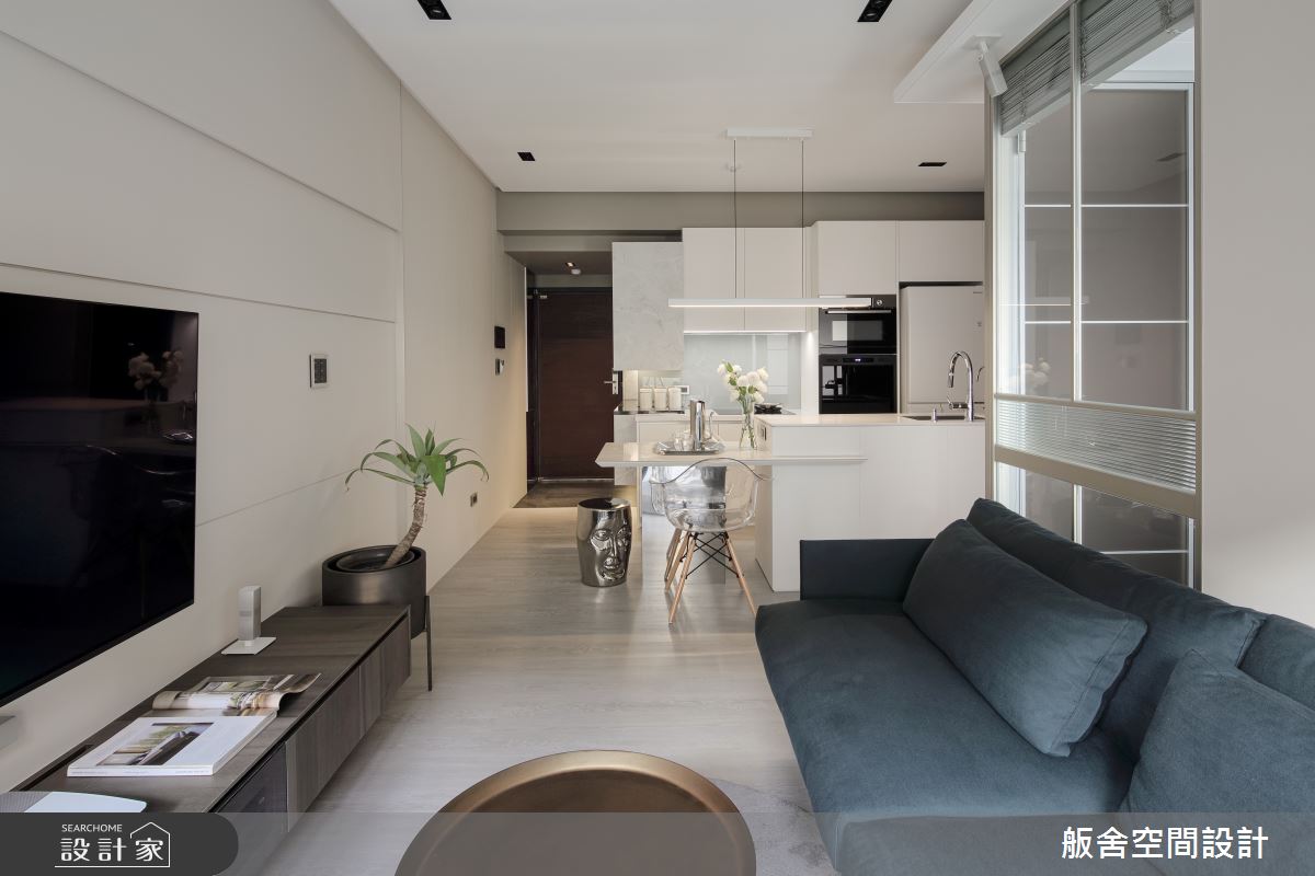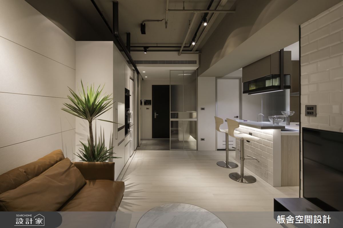 來自舨舍空間設計的12坪現代風住宅案,屋主一家人共有1位大人、2位長輩,是一間單層預售屋的兩房格局,設計師藉由建材以乳膠漆、壁紙、超耐磨木地板、鐵件、系統板材、人造石、軌道燈的搭配應用,實現一家人的理想生活。
