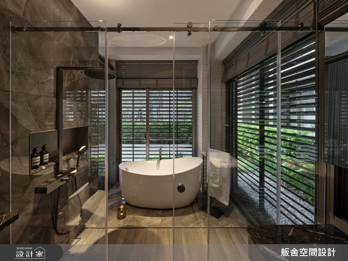 舨舍空間設計以乳膠漆、壁紙、超耐磨木地板、鐵件、鋼刷木皮、系統板材、大理石、磁磚、賽麗石的搭配應用,呈現現代風居家氛圍,將此間13坪、兩房、單層、新成屋(5年以下)打造成舒適愜意的家庭空間,完成1位大人、1位長輩全家人的夢想之居。